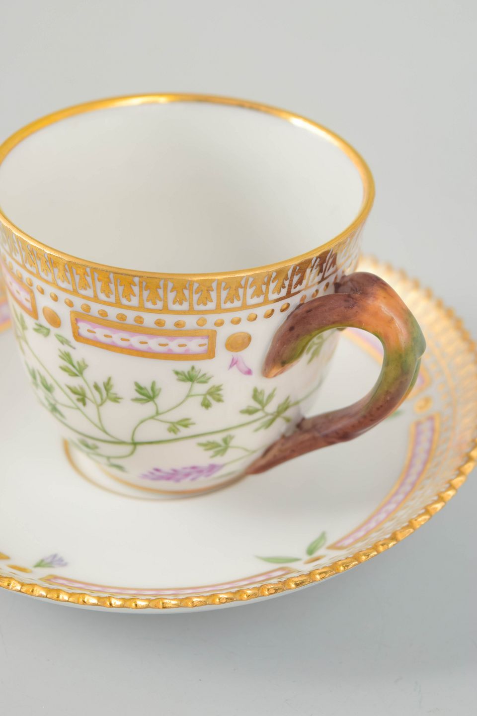 Bio: The Flora Danica service was introduced in 1790 and is regarded as one of Royal Copenhagen’s most prestigious productions. The decoration is based on the monumental botanical work Flora Danica and is renowned for its high level of detail and exceptional craftsmanship. Demitasse cups were traditionally used for serving strong coffee and represent a refined element of the classic coffee service.