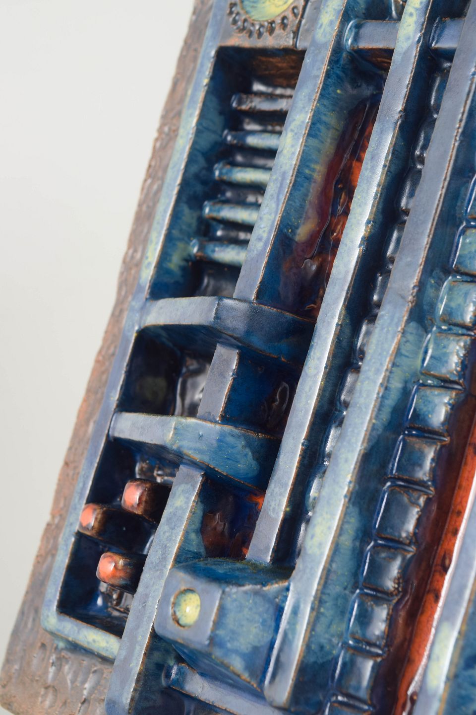 European studio ceramics of the 1970s were marked by experimental and often sculptural expressions, drawing clear inspiration from architecture and brutalist design. Wall reliefs such as this occupy the boundary between art and craft and were typically produced as unique works or in very small series, making them highly collectible today.