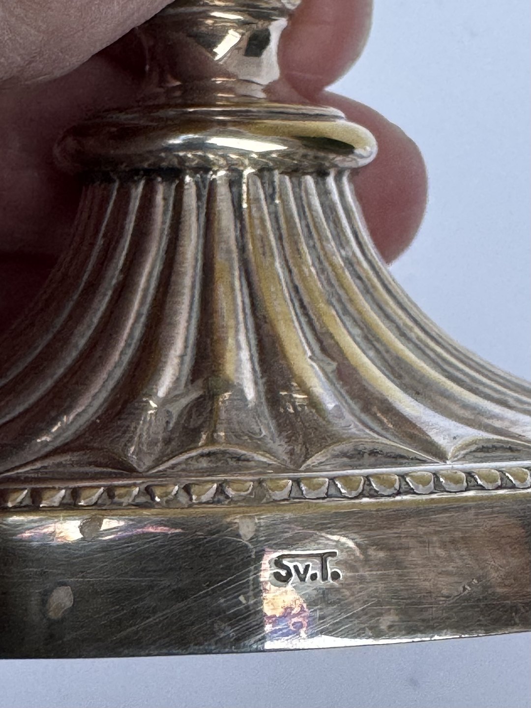 Pair of silver plated candlesticks designed by Svend Toksværd. In good condition without damage or repairs. Normal wear on the surface. Signed Sv. T. Height: 17 cm Dealer