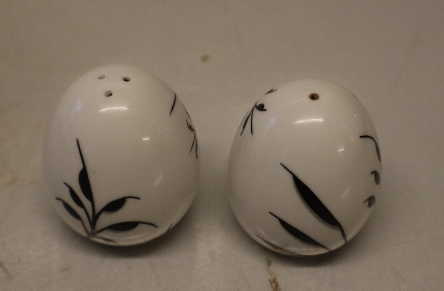 Set Salt & pepper 5 cm black Mega - discontinuedRoyal Copenhagen Blue Fluted MEGA . In nice and mint condition Megamussel Design: Karen Kjældgård-Larsen