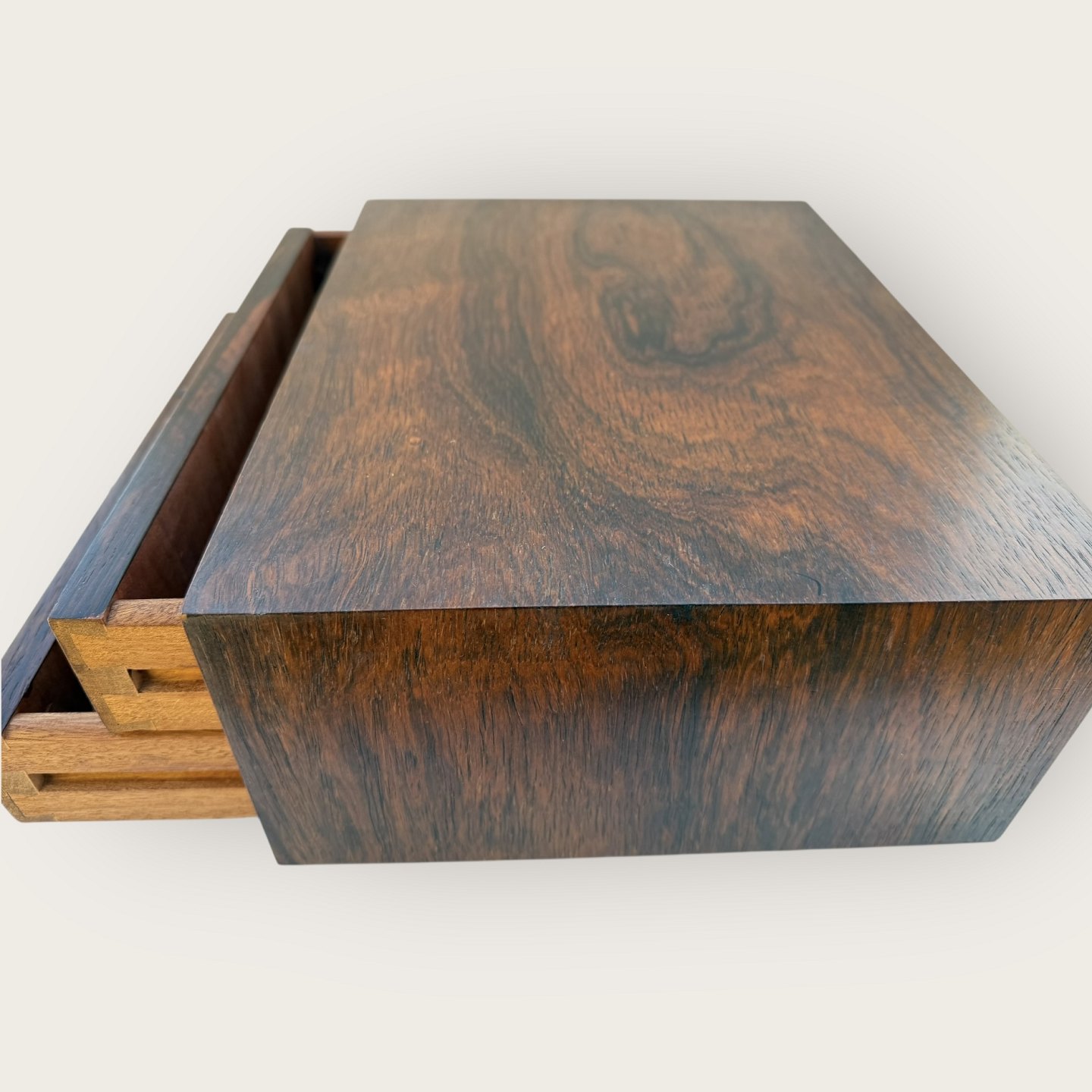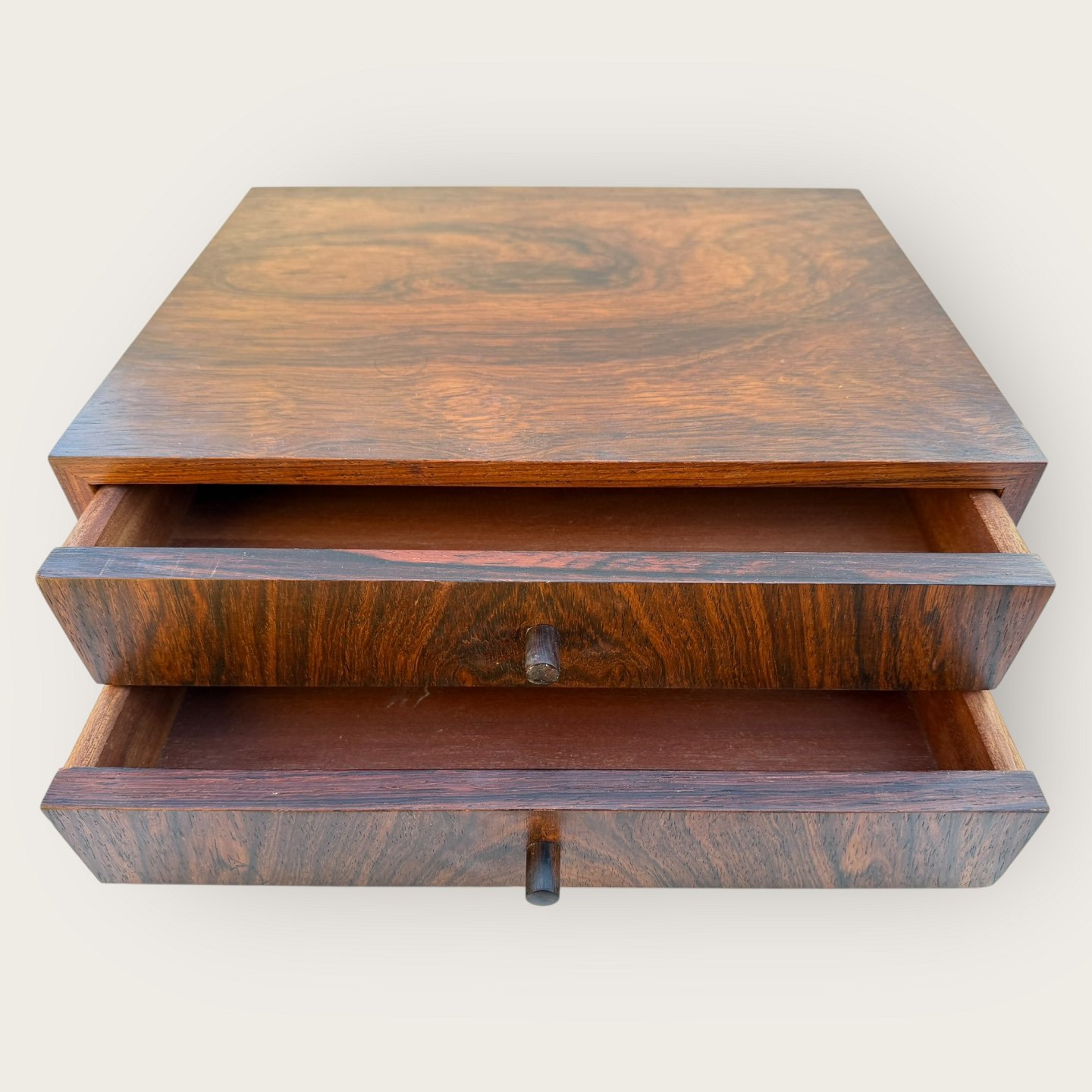 Rosewood chest with 2 drawers, Danish modern from the 1960s, appears in very good condition with few signs of wear, Dimensions: 32x25x12cmStock: 1