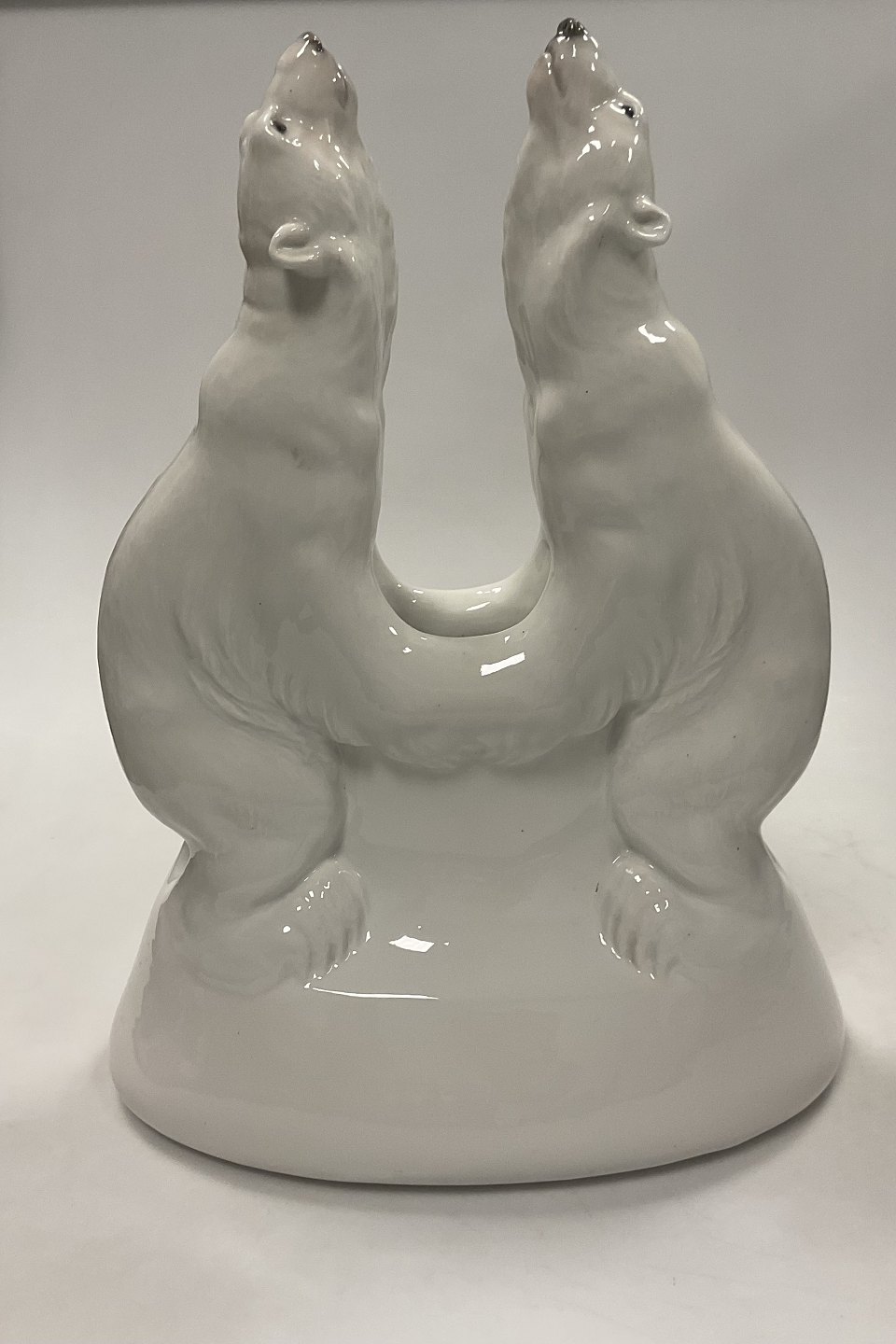 Royal Copenhagen Art Nouveau Crystalline Vase with two Polar Bears by Valdemar Engelhardt H81. Measures 42cmHas burning mistakes. Maybe test piece to the other vase we have.