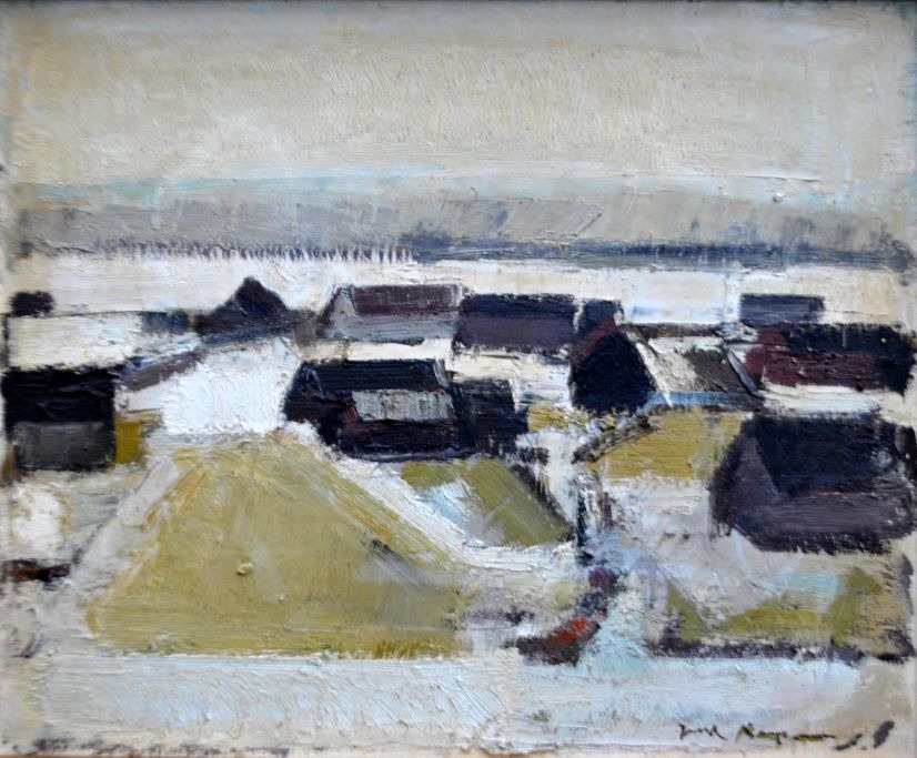 Kampmann, Jack (1914 - 1989) Denmark: Snow landscape, Faroe Islands. Oil on canvas. Signed. 38 x 48 cm.Framed: 48 x 57 cm.
