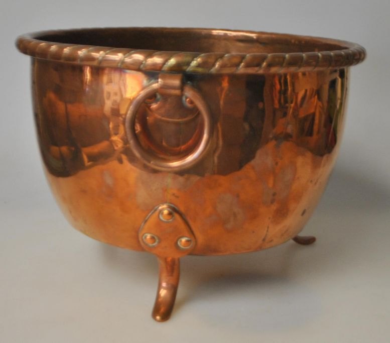 Copper flower pot on three legs, 19th century. Denmark.