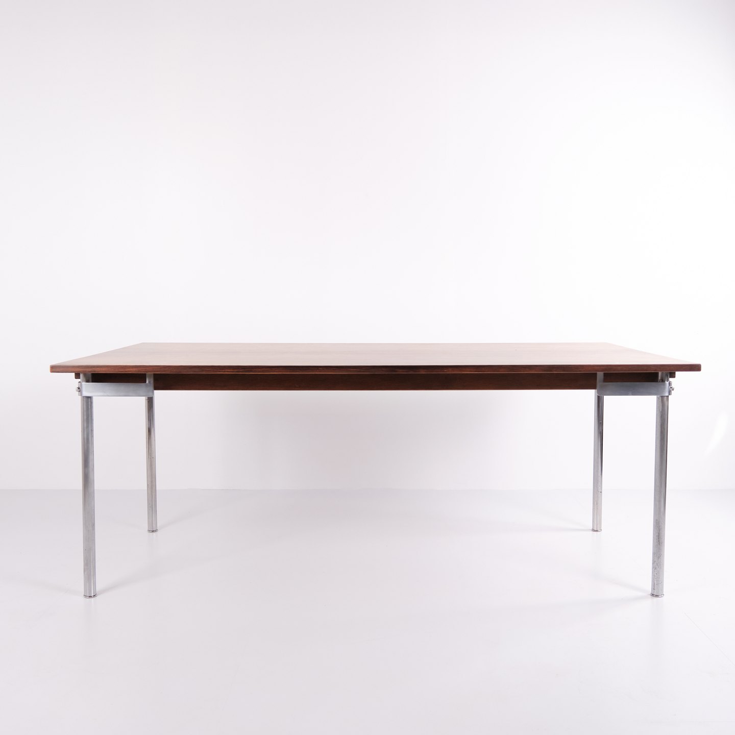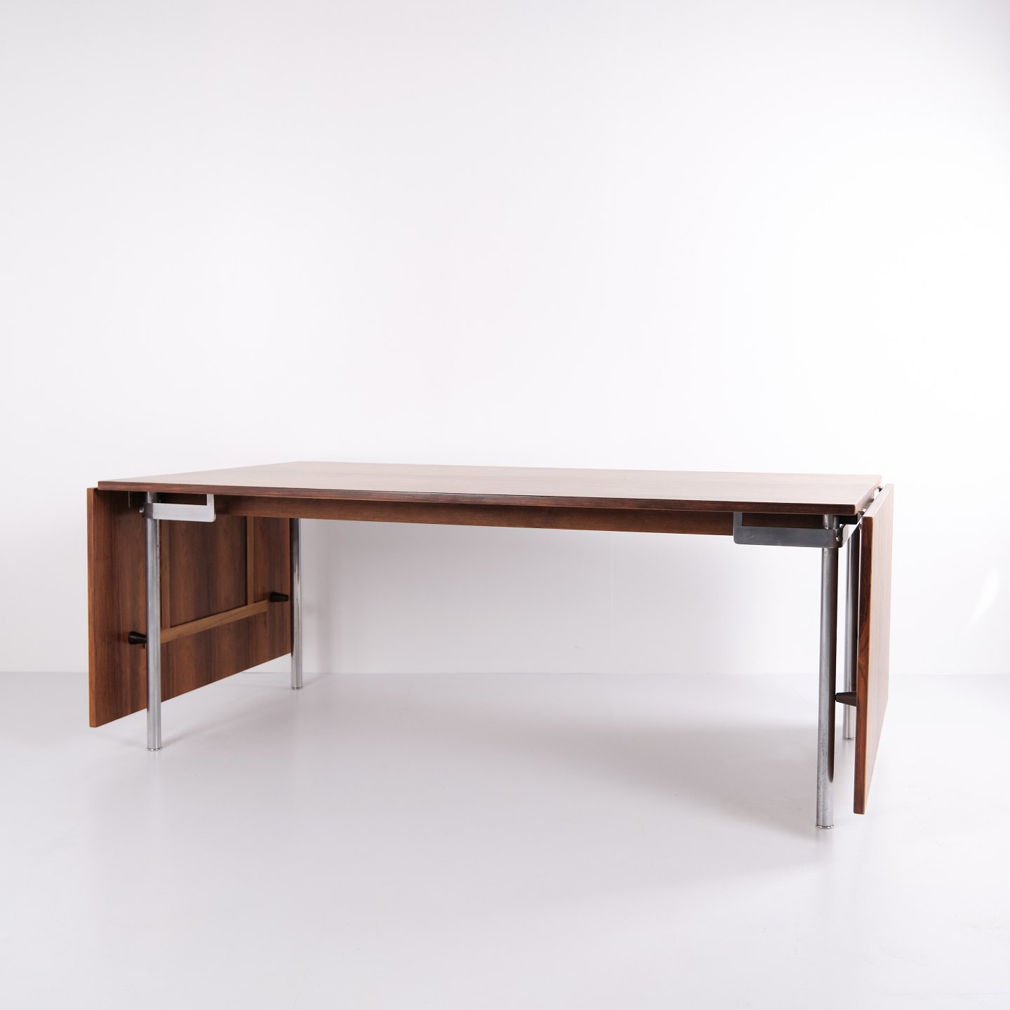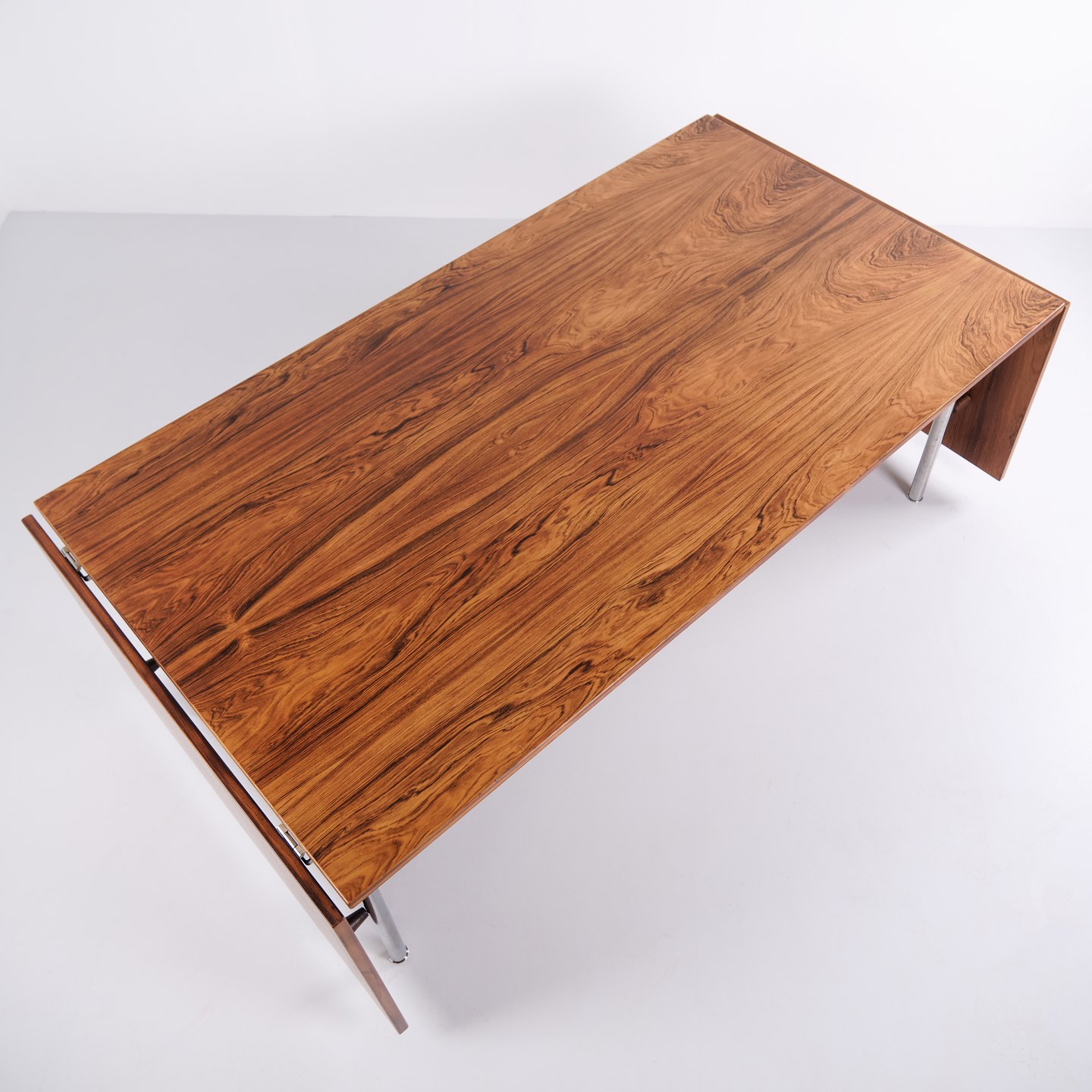 Dining table model AT 319 by Hans J. Wegner for Andreas Tuck. Rio rosewood with steel legs and 2 extension leaves. Danish design from the 1960s.— Designer: Hans J. Wegner