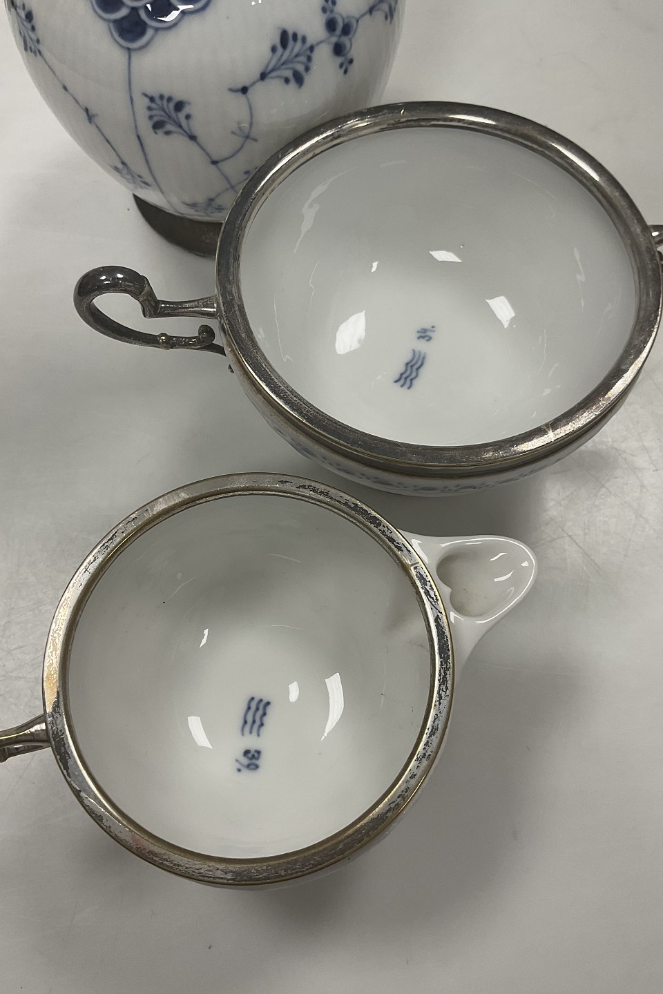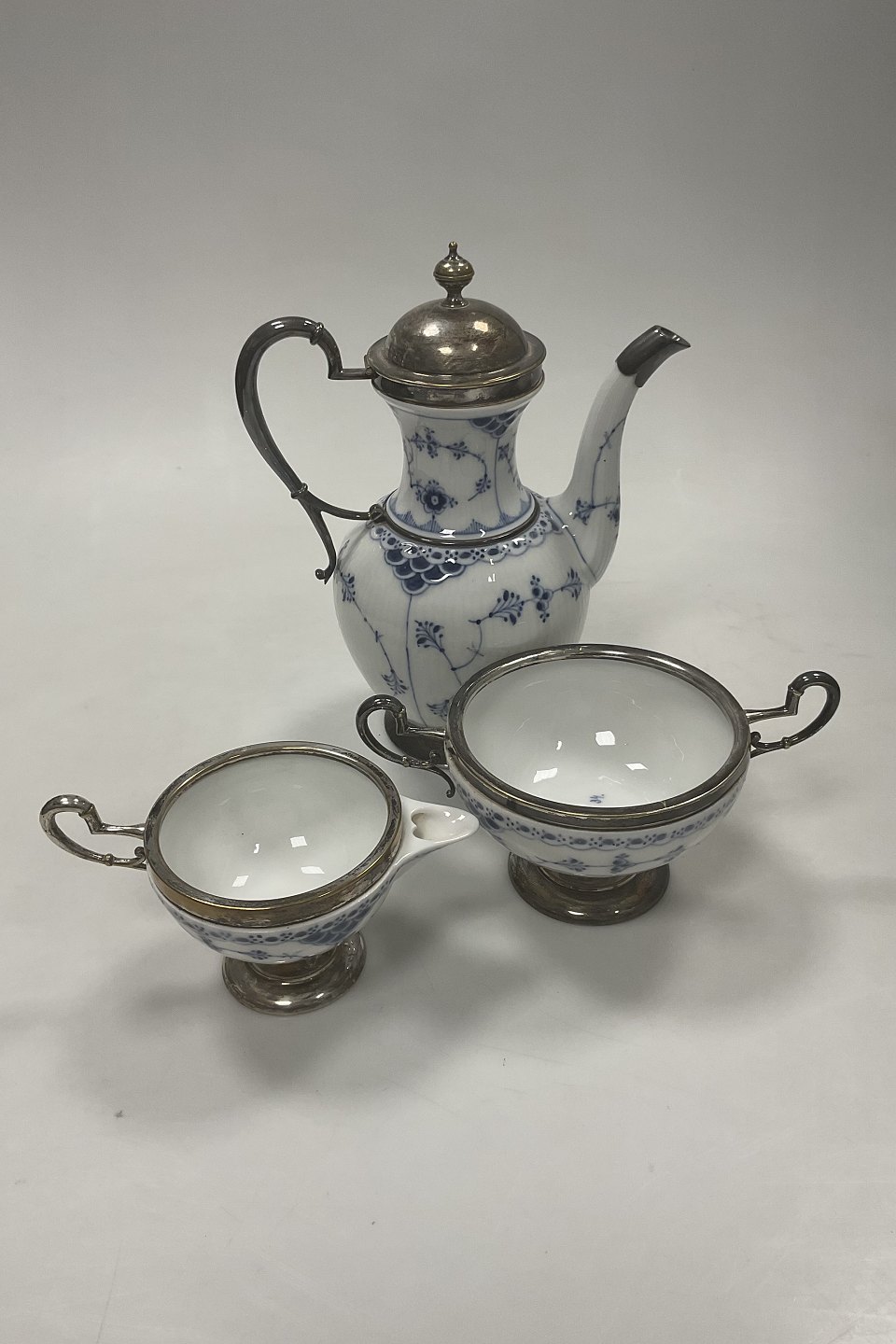 Royal Copenhagen Half Lace Coffee Pot, Creamer and Sugar Bowl with metal mountingCoffee Pot 23,5cm / 9.25 inch