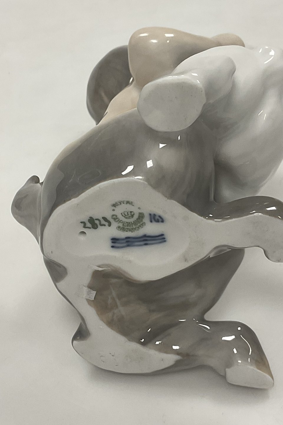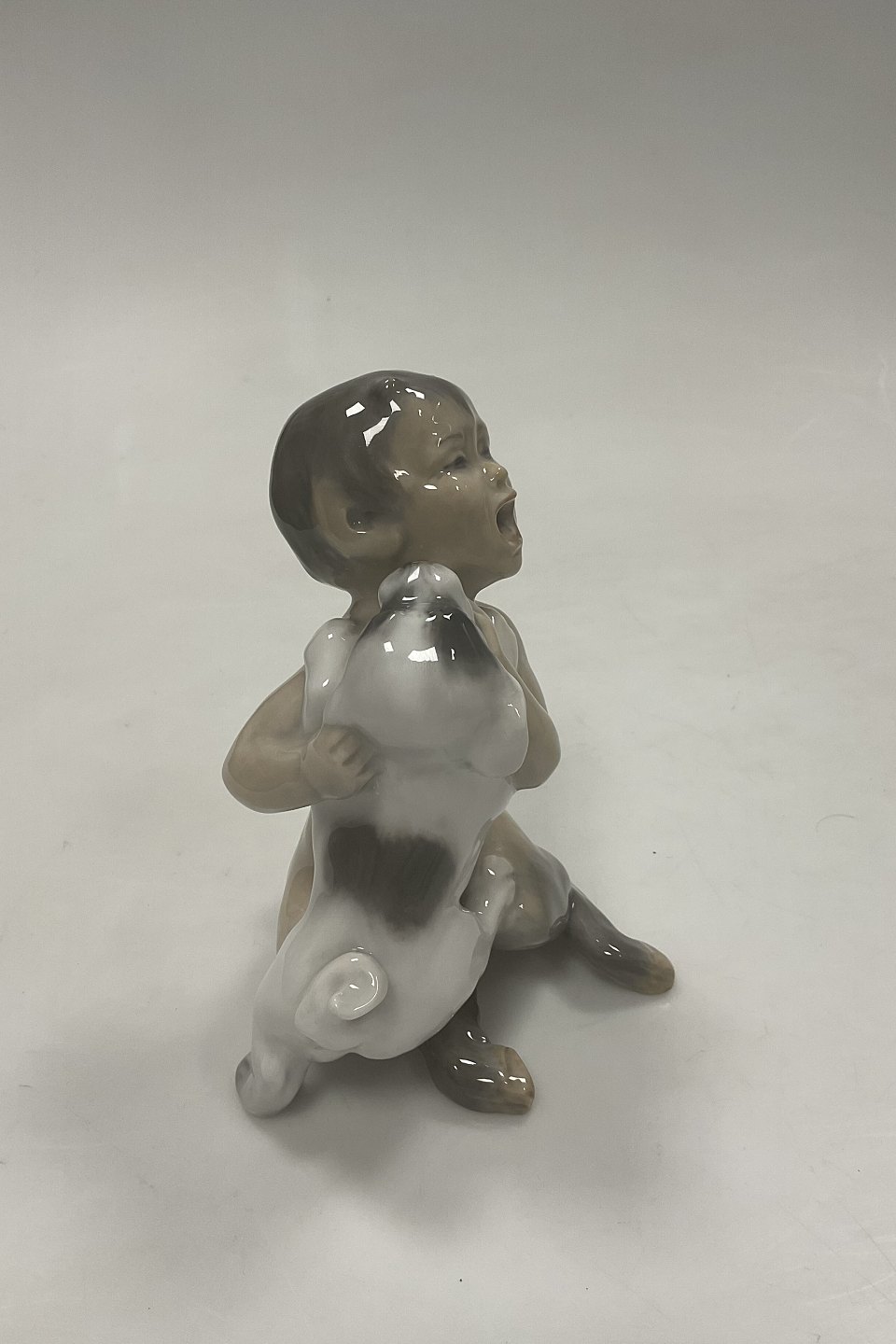 Royal Copenhagen Figurine og Faun with Dog No 2823. 2nd Quality. Measures 14.5 cm / 5 45/64 in.Stock: 1