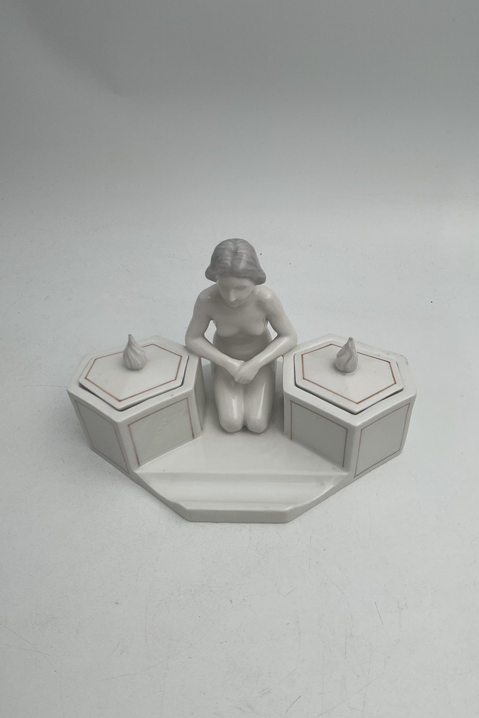 Bing and Grondahl Art Nouveau Inkwell Set with Girl No. 1556Measures 16,7cm x 9,6cm x 10cm / 6.57 inch x 3.78 inch x 3.94 inch
