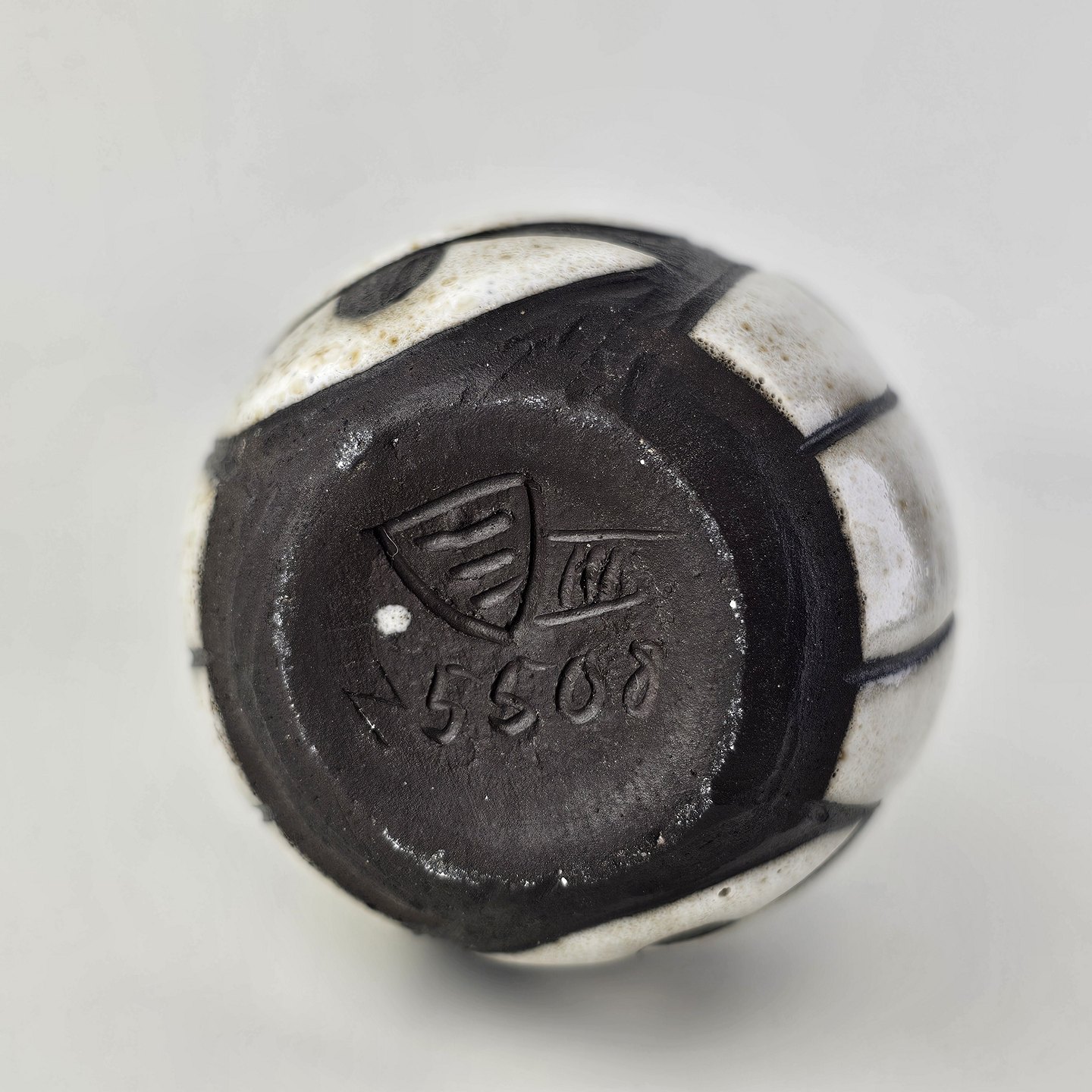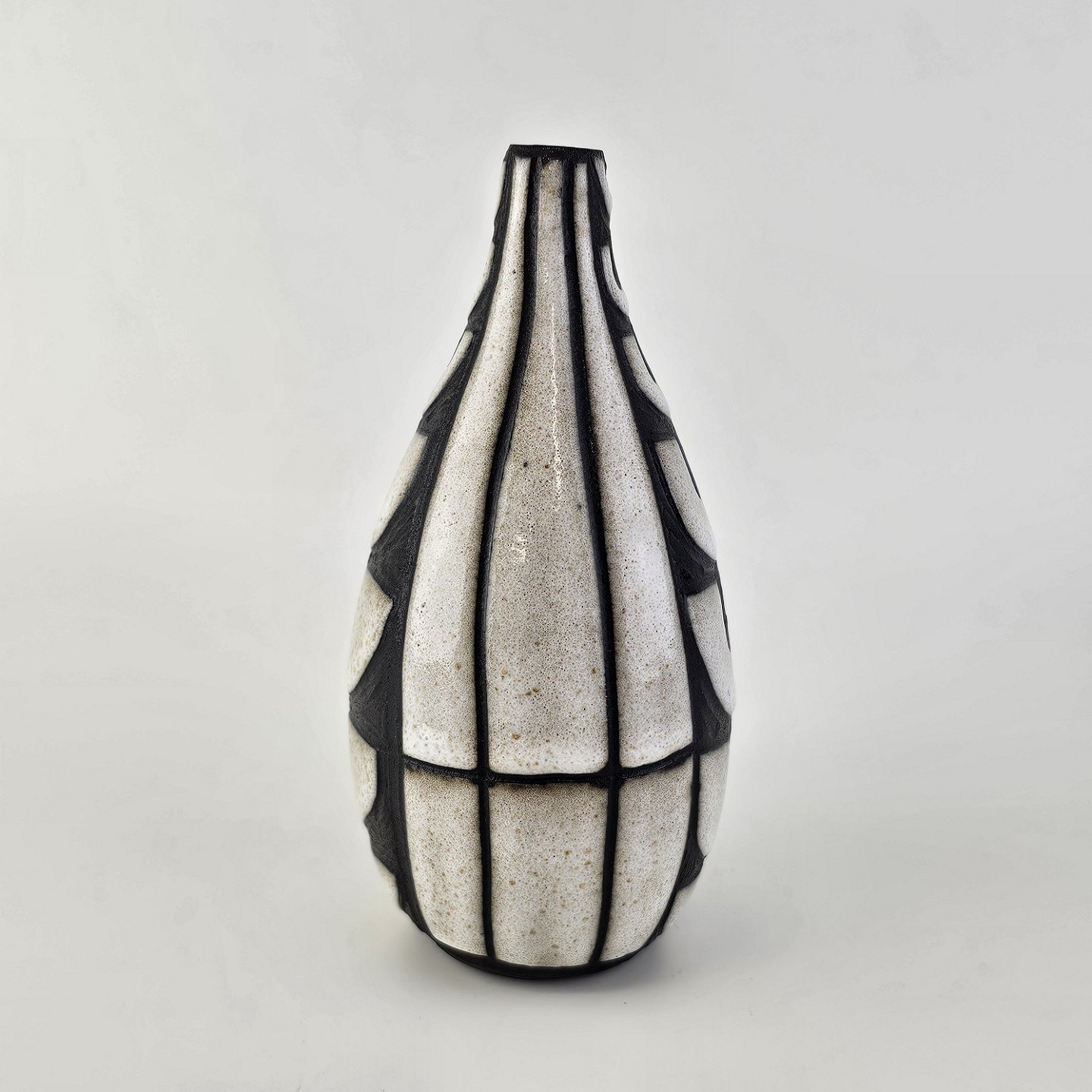 Vase i keramik fra Negro serien med abstrakt motiv på mørk baggrund. Nr. N5508Formgiver Marianne Starck