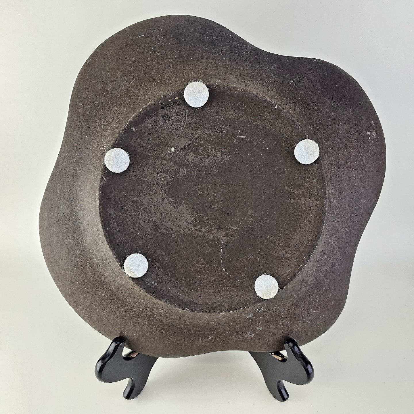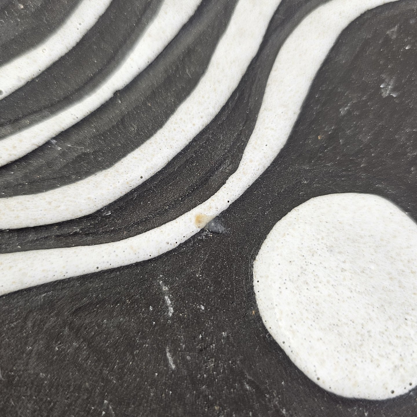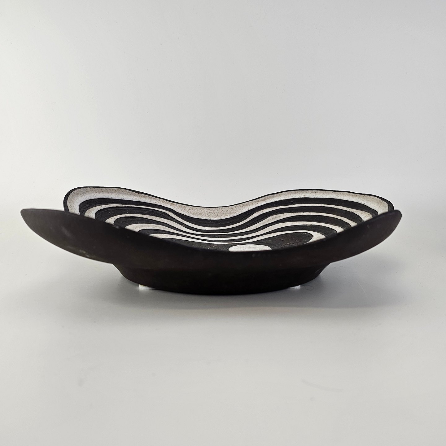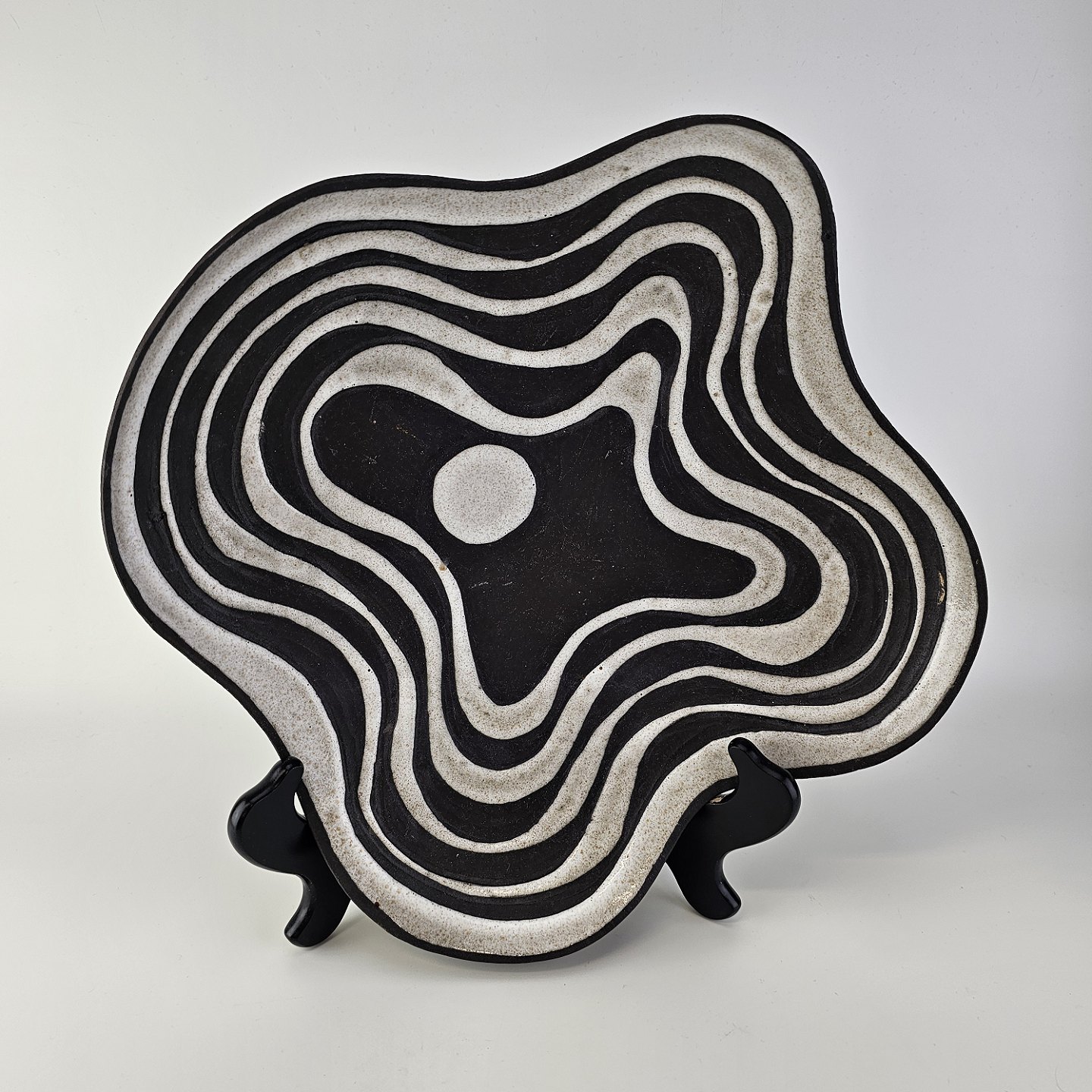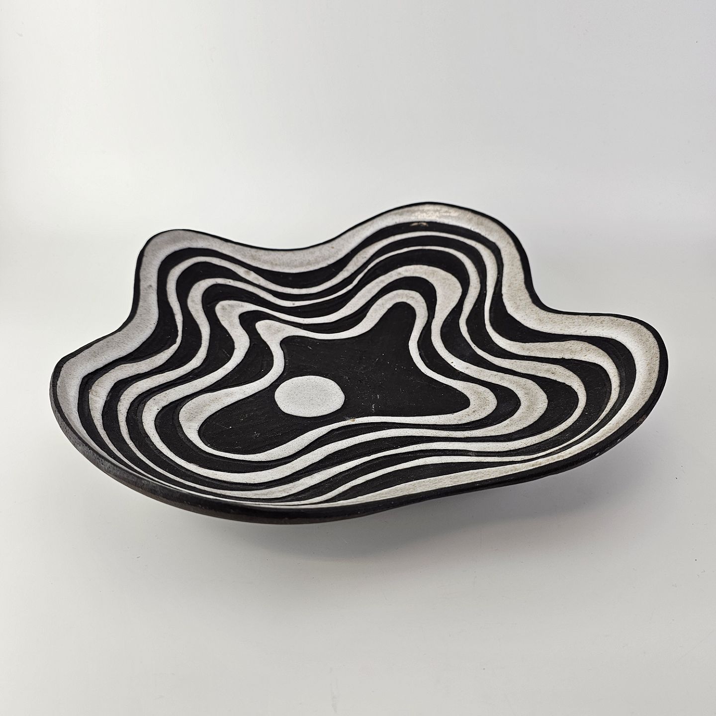 Fad i keramik fra Negro serien med abstrakt motiv på mørk baggrund. Nr. 5608-2Formgiver Marianne Starck