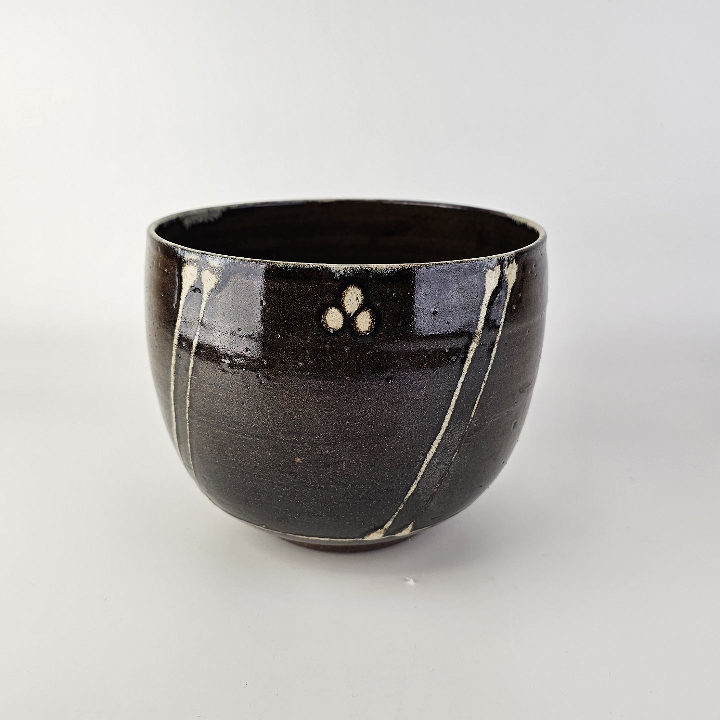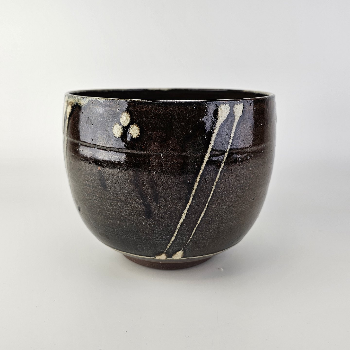 Urtepotte med Japansk lignende mønster Brun med stregerProducent ukendt