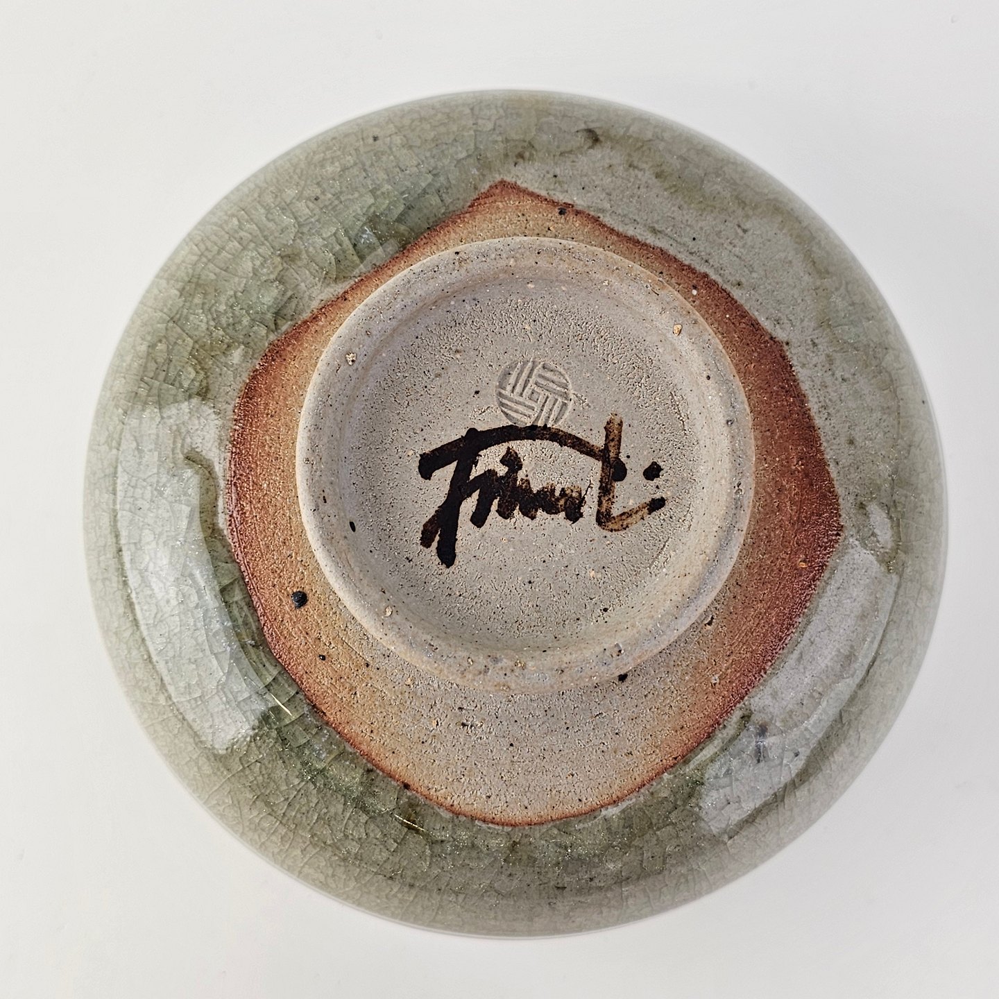 Grønlig keramik skål med krakelering.Signeret Finn L
