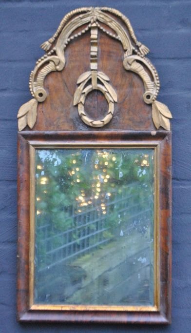 Danish Louis XVI mirror, walnut veneer, circa 1780. H.: 70 cm. W.: 34 cm.Item number: 28706