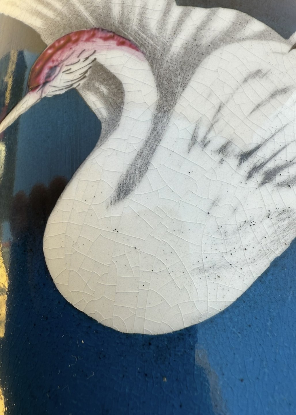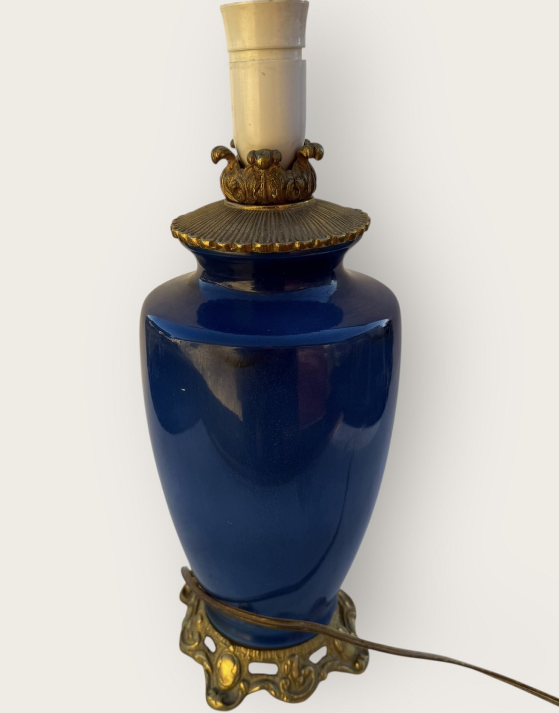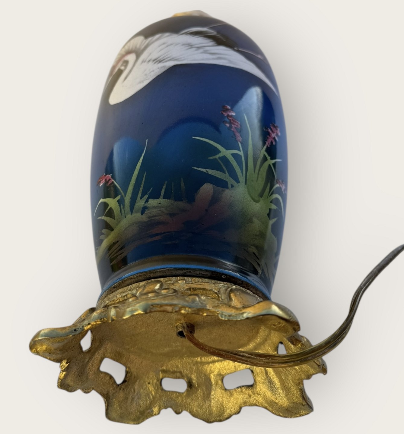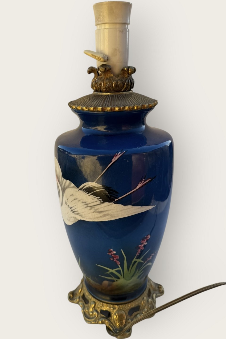 Large table lamp with flying bird in porcelain and brass, height with socket 39cm *Some small cracks under the glaze (see photo) otherwise in great conditionStock: 1