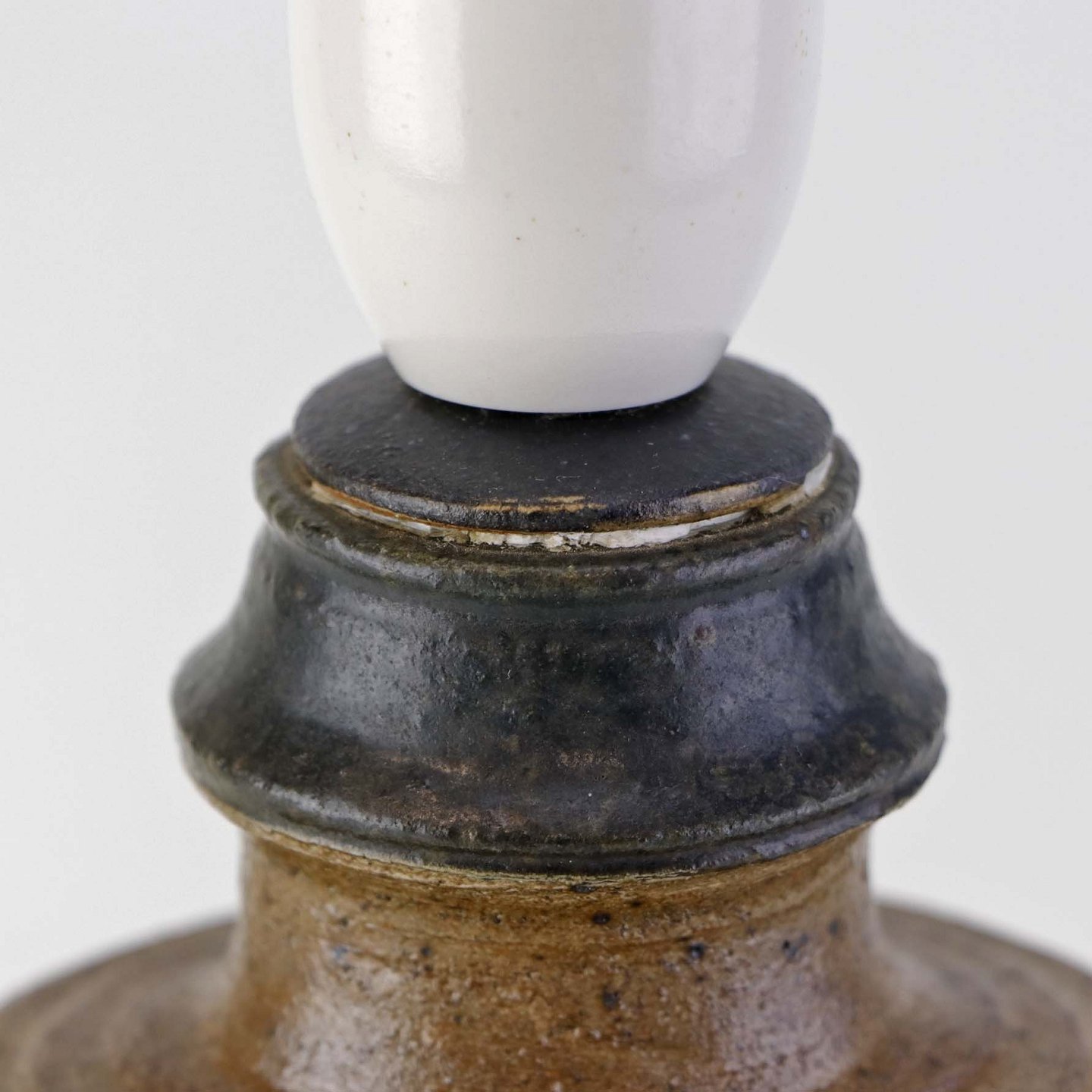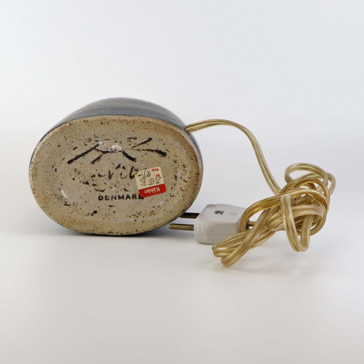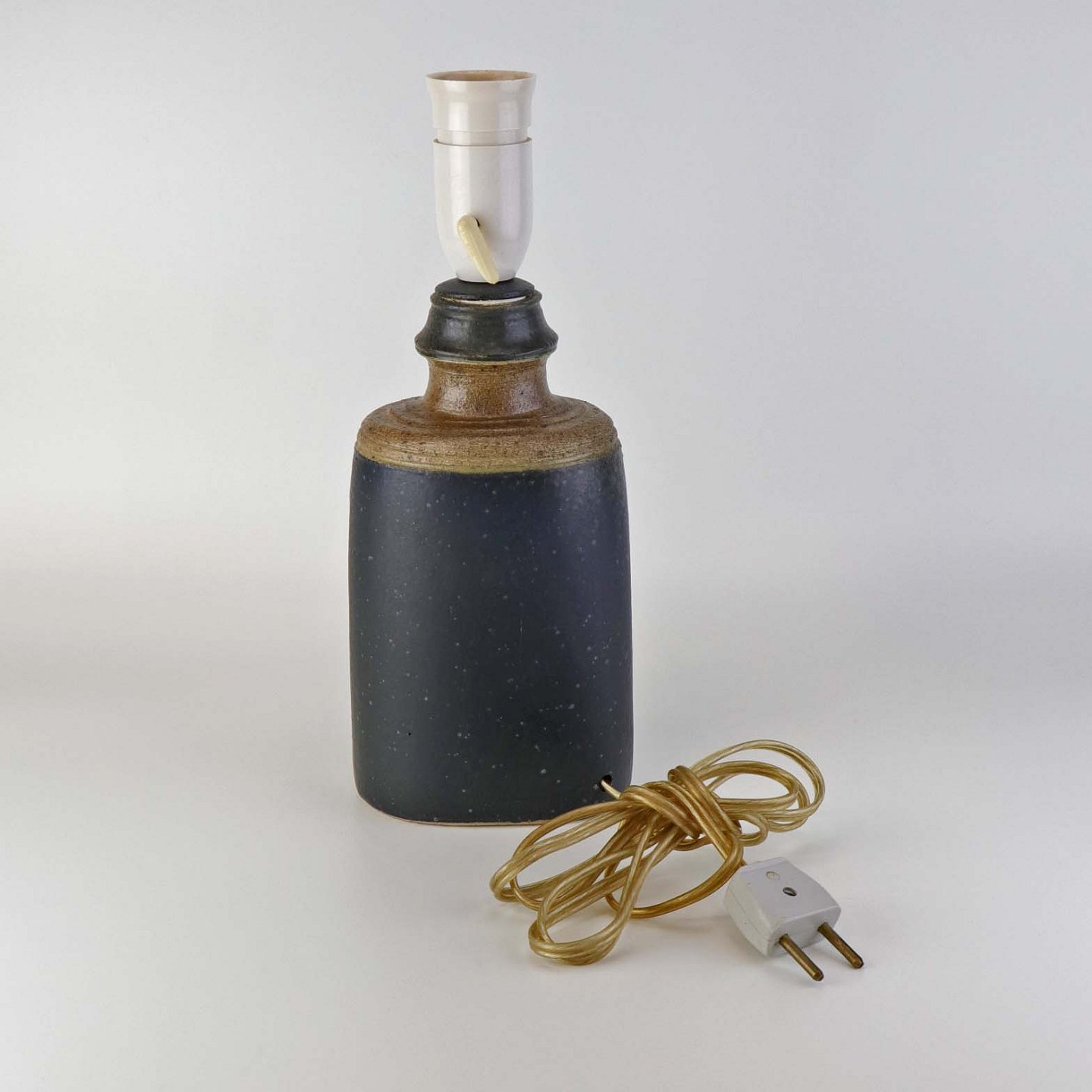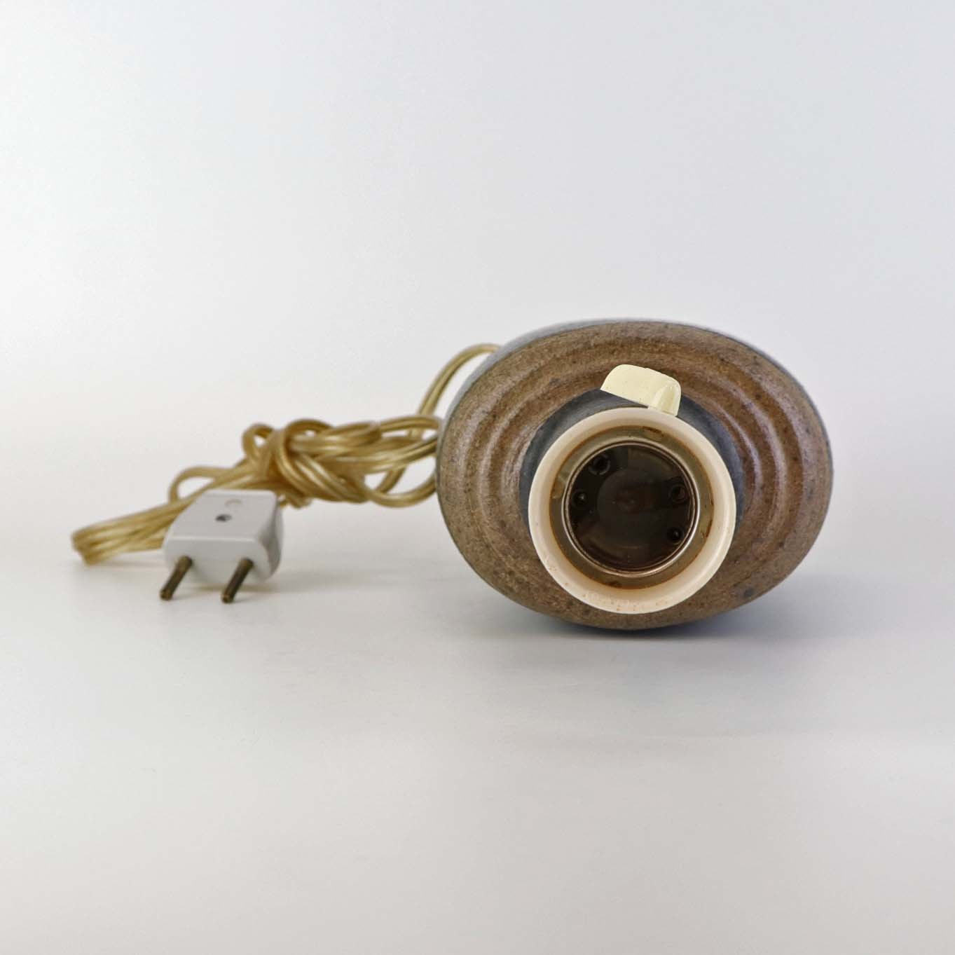 Oval lampefod i keramik med brun og blåsort glasering og lys plastfatning.Producent Kähler keramik