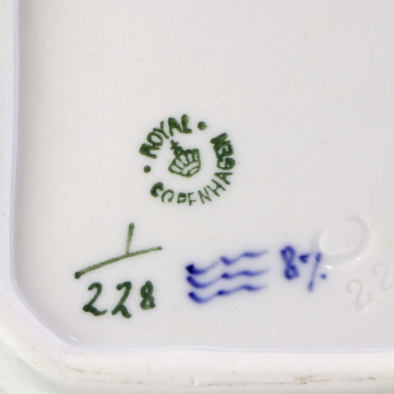 Sættefad i kongelig porcelæn fra stellet Musselmalet riflet. Nr. 1/228 Producent Royal Copenhagen