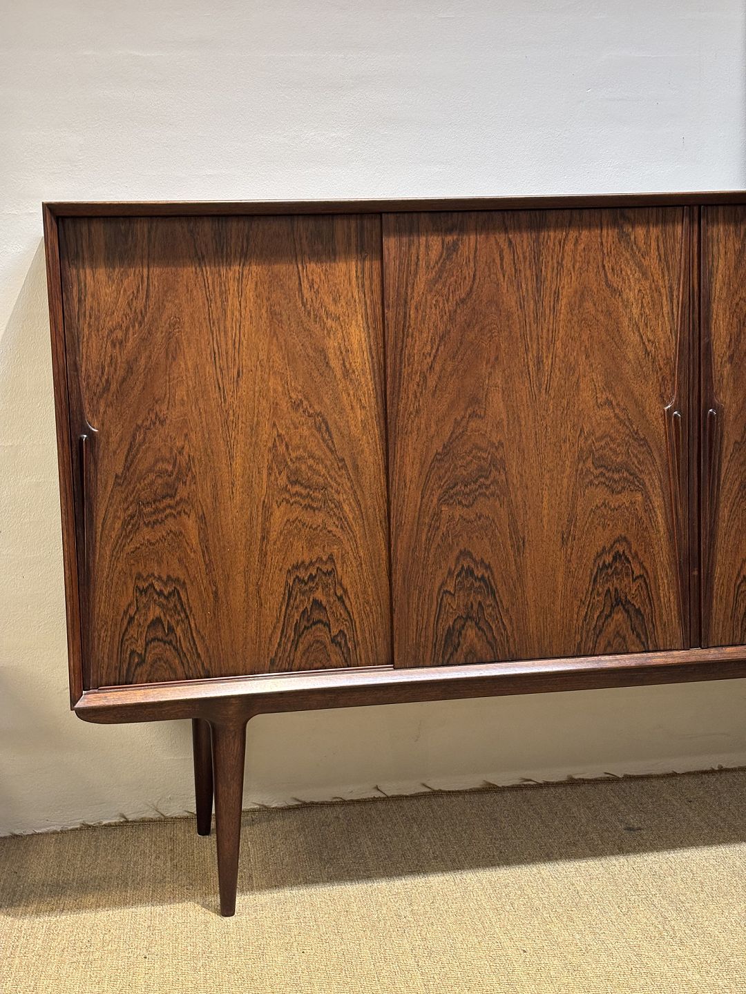 Omann jur. a/s. Skænk model 19 i palisander. Meget fin stand uden solskader. Mål h 110 d 45 b 200 Nordic design.
