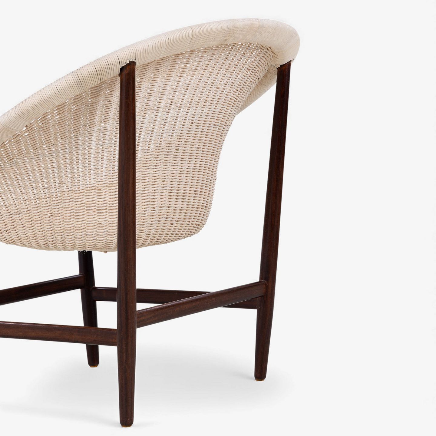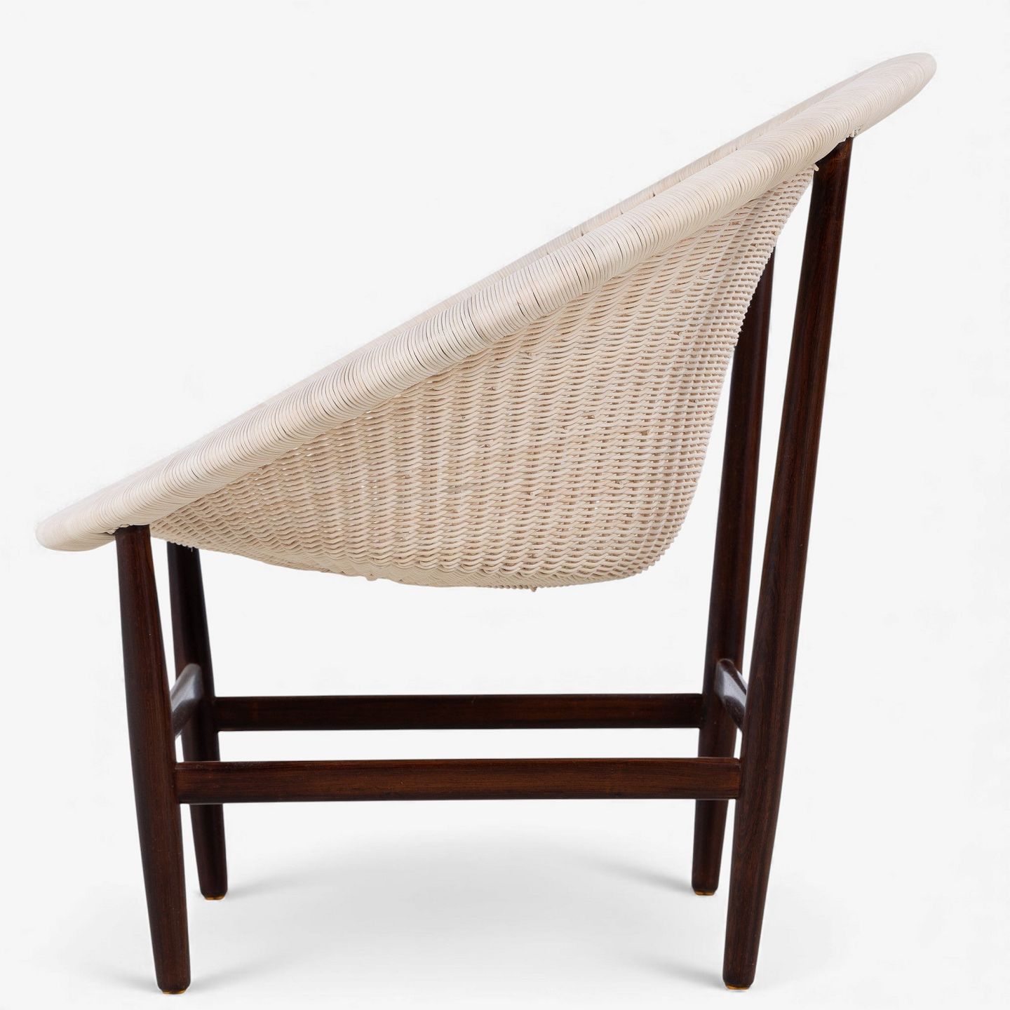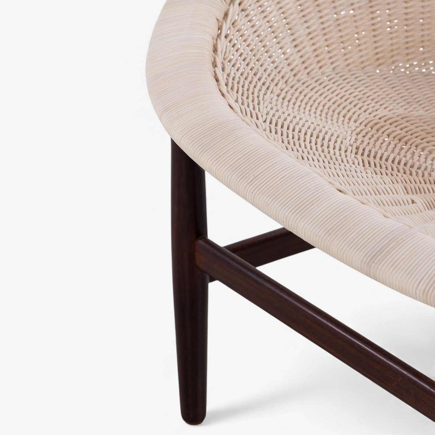 Rare 'Basket Chair' armchair in patinated rosewood with new cane seat. Designed in 1950.
