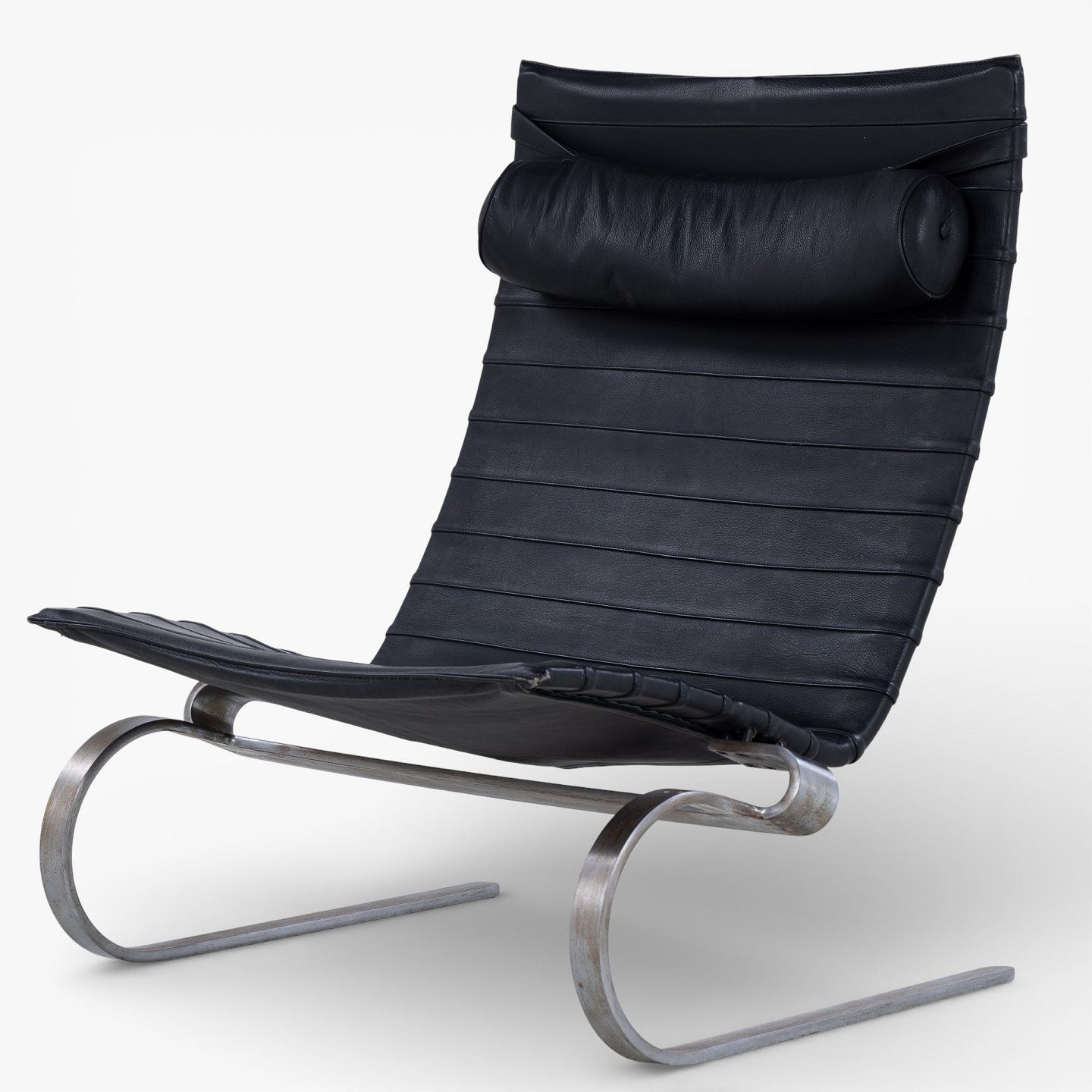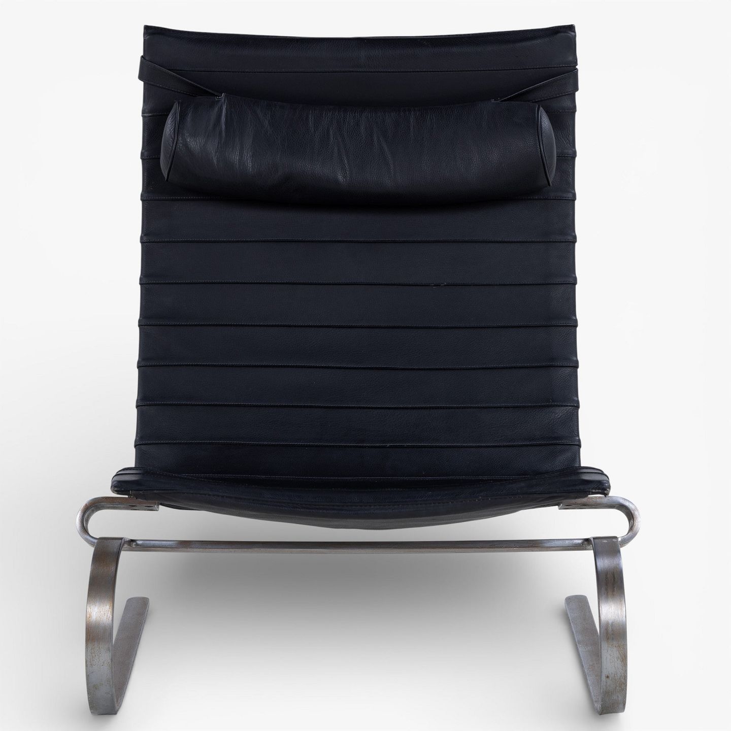 PK 20 - Armchair in original black leather with neck cushion and spring steel frame. Designed in 1968.
