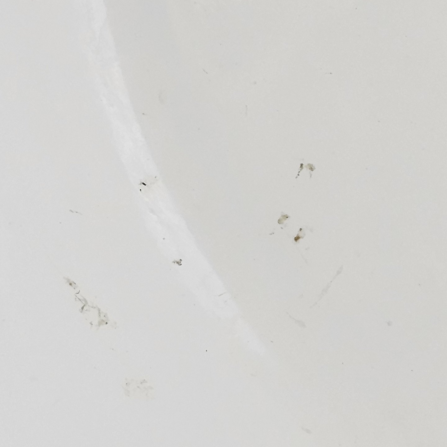 Fremstår med små skrammer i overfladen på indersiden og under bunden