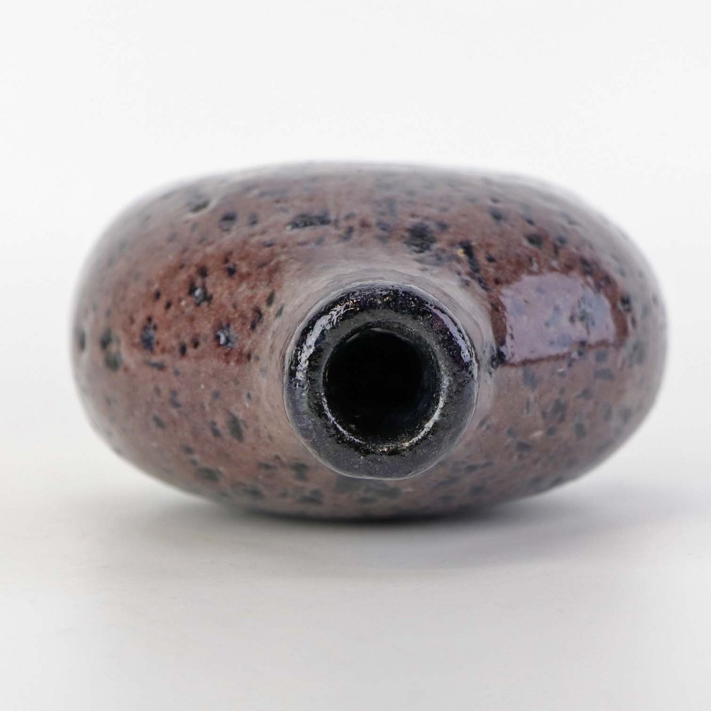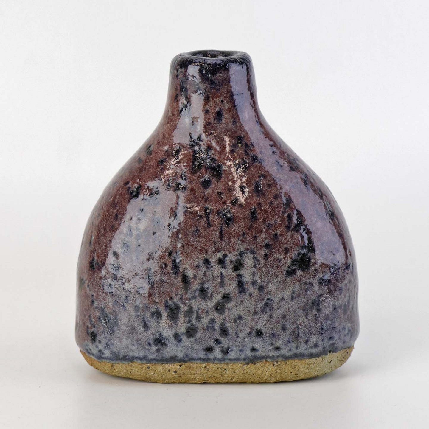 Lille flaskeformet vase i keramik med blommefarvet glasur.Formgiver Conny Walther
