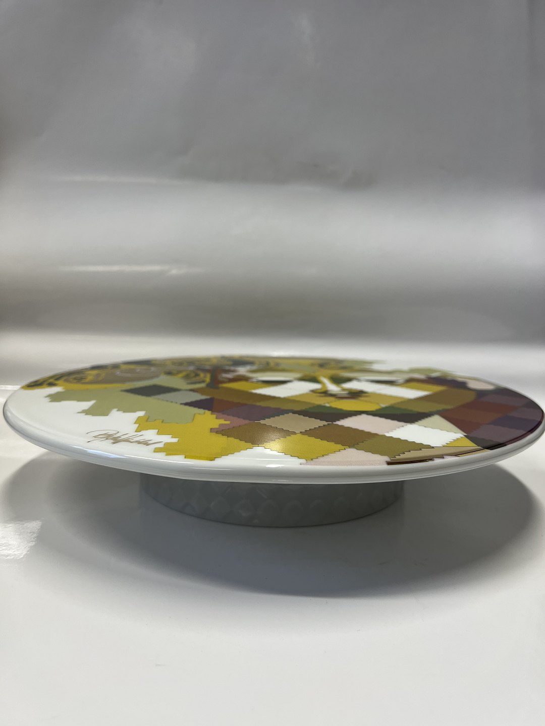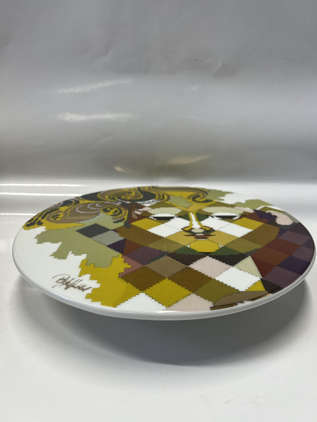 This beautiful and timeless cake plate is a must have for the modern kitchen. A beautiful minimalist cake plate in uniform white, with a beautiful motif on the top. The motif is a beautiful mosaic of colors and shapes, which together give it - for Bjørn Wiienblad - such a characteristic face with the beautiful eyes. The base is made with a beautiful window pattern that gives the plate life.The cake plate is for you who love to serve with style, and at the same time love Danish design.