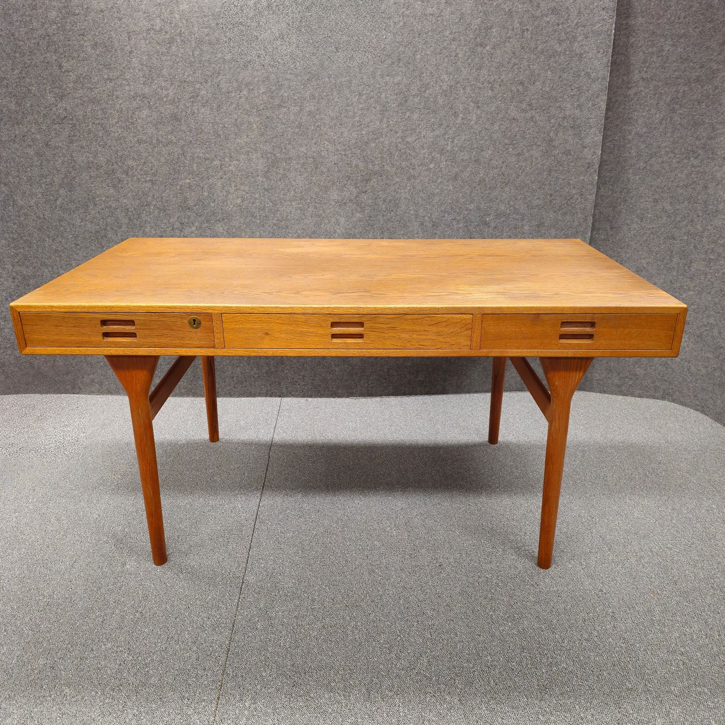 Skrivebord model ND93 i eg med tre skuffer, venstre skuffe med nøgleDesign Nanna Ditzel