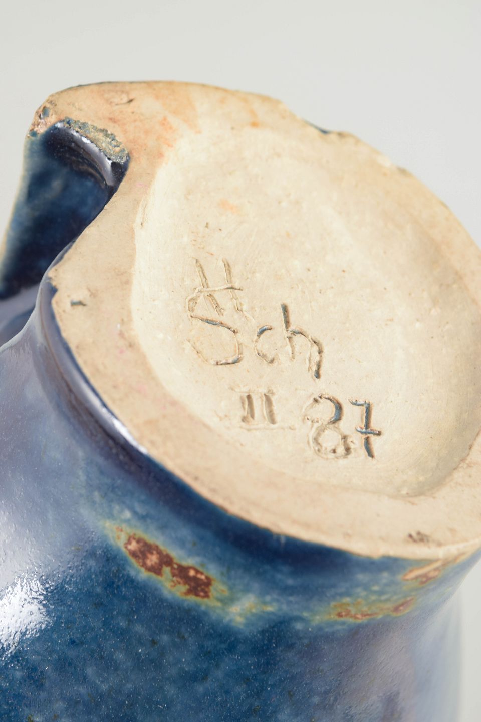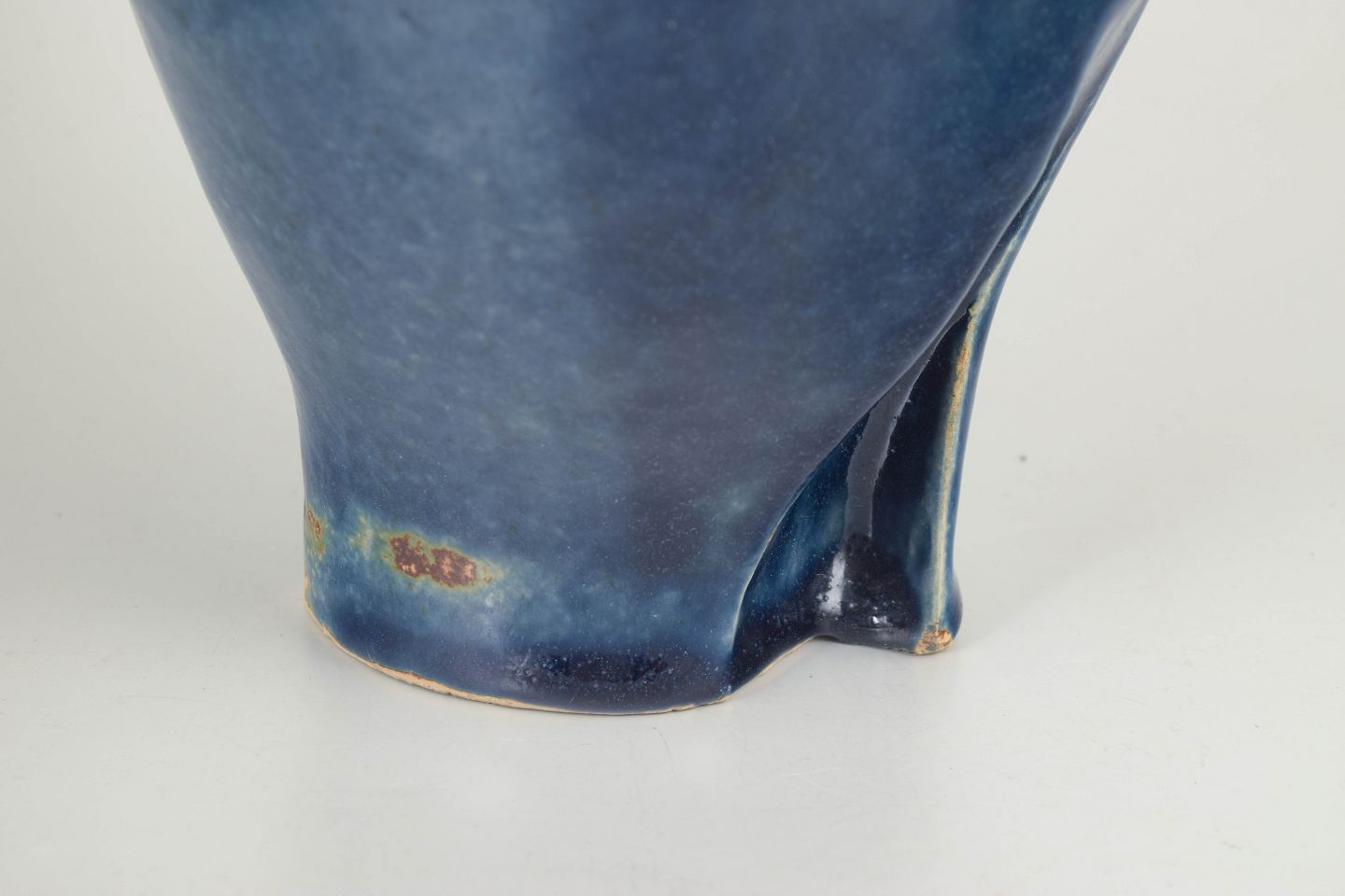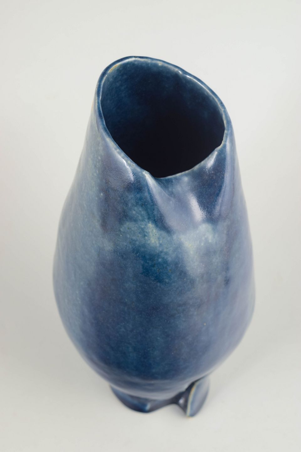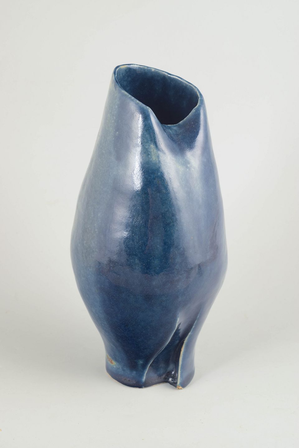 European studio ceramicist, unique vase, 1987.Sculptural stoneware vase with a deep blue, subtly variegated glaze and an organic, asymmetrical opening. Signed and dated 1987.