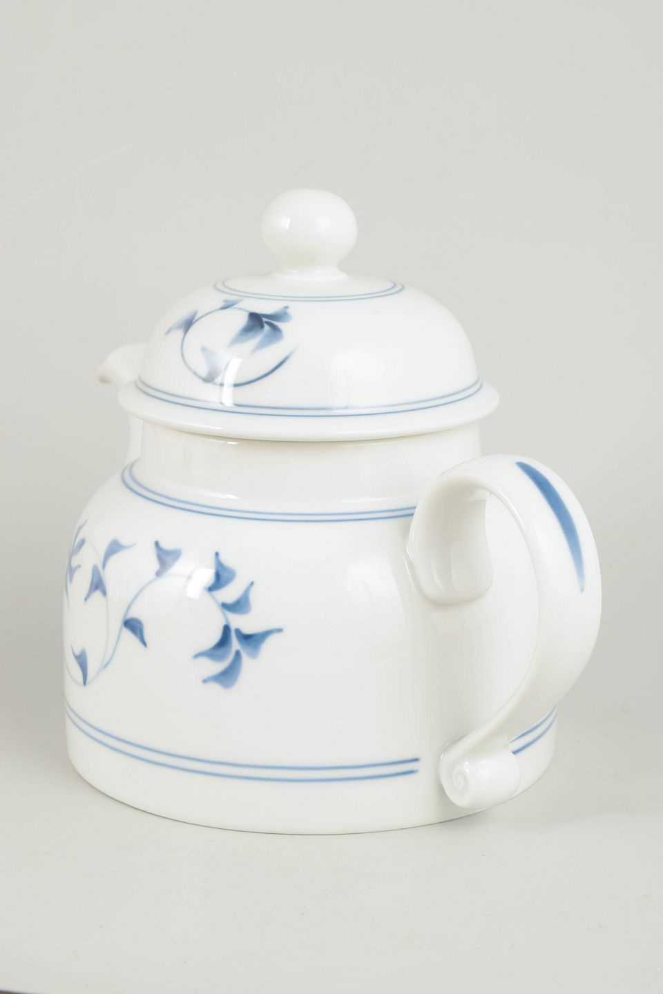 Royal Copenhagen Noblesse teapot, 1980s.Elegant porcelain teapot decorated with the characteristic Noblesse pattern in blue underglaze. A balanced, classic form with lid and gently curved spout, typical of Royal Copenhagen’s mid-20th-century design language.