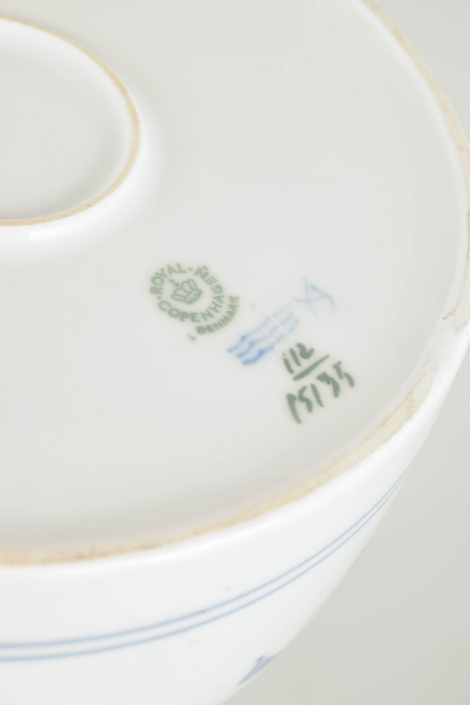 The Noblesse series was introduced by Royal Copenhagen in the mid-20th century and is characterised by its light, stylised floral and vine motif in blue underglaze. The service represents a more modern and restrained interpretation of the classic blue-and-white tradition and gained particular popularity in the post-war period.