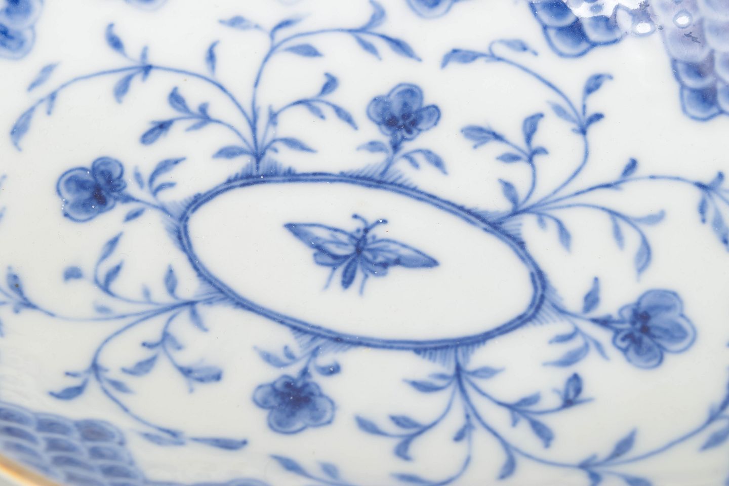 The Butterfly pattern was introduced by Bing & Grøndahl in the late 19th century and reflects the light, nature-inspired aesthetics of the Rococo revival. The service is characterised by delicate floral scrolls, insect motifs, and its distinctive scale-pattern border. Early pieces with gilt rims are rare and highly sought after by collectors.
