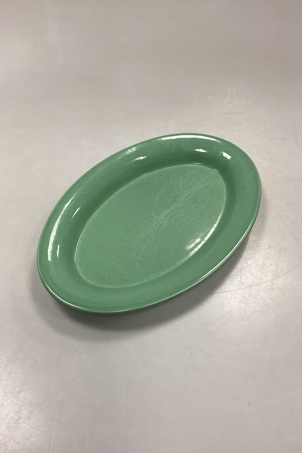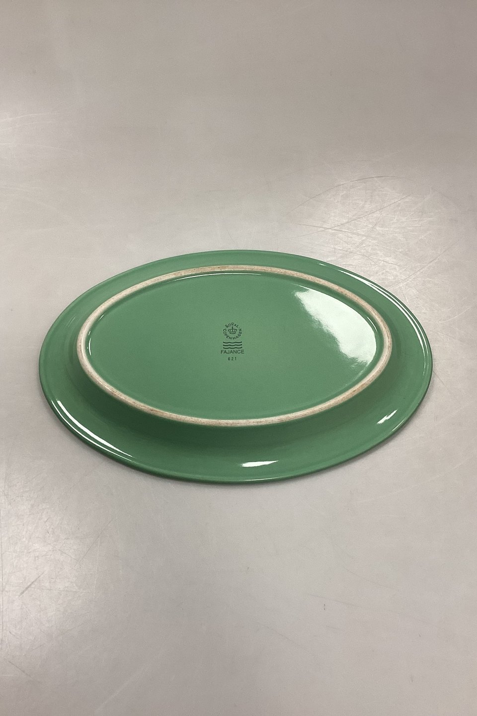 Royal Copenhagen Ursula Oval Plate in Light Green No. 621Measures 28 cm / 11.02 in. Wear with clear knife marks, see photo.