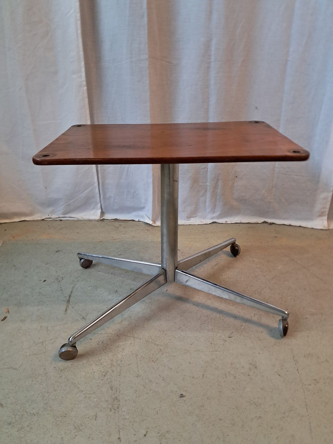 Bord i metal med massivt træplade, fra 1960erne.Det har brugsspor.