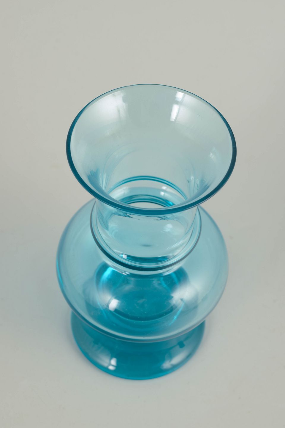 Tamara Aladin for Riihimäen Lasi, mouth-blown art glass vase.An elegant vase in clear turquoise-blue glass with a balanced, sculptural profile and a softly rounded body. Mouth-blown with a gently flared neck and foot, characteristic of Finnish art glass from the 1970s.
