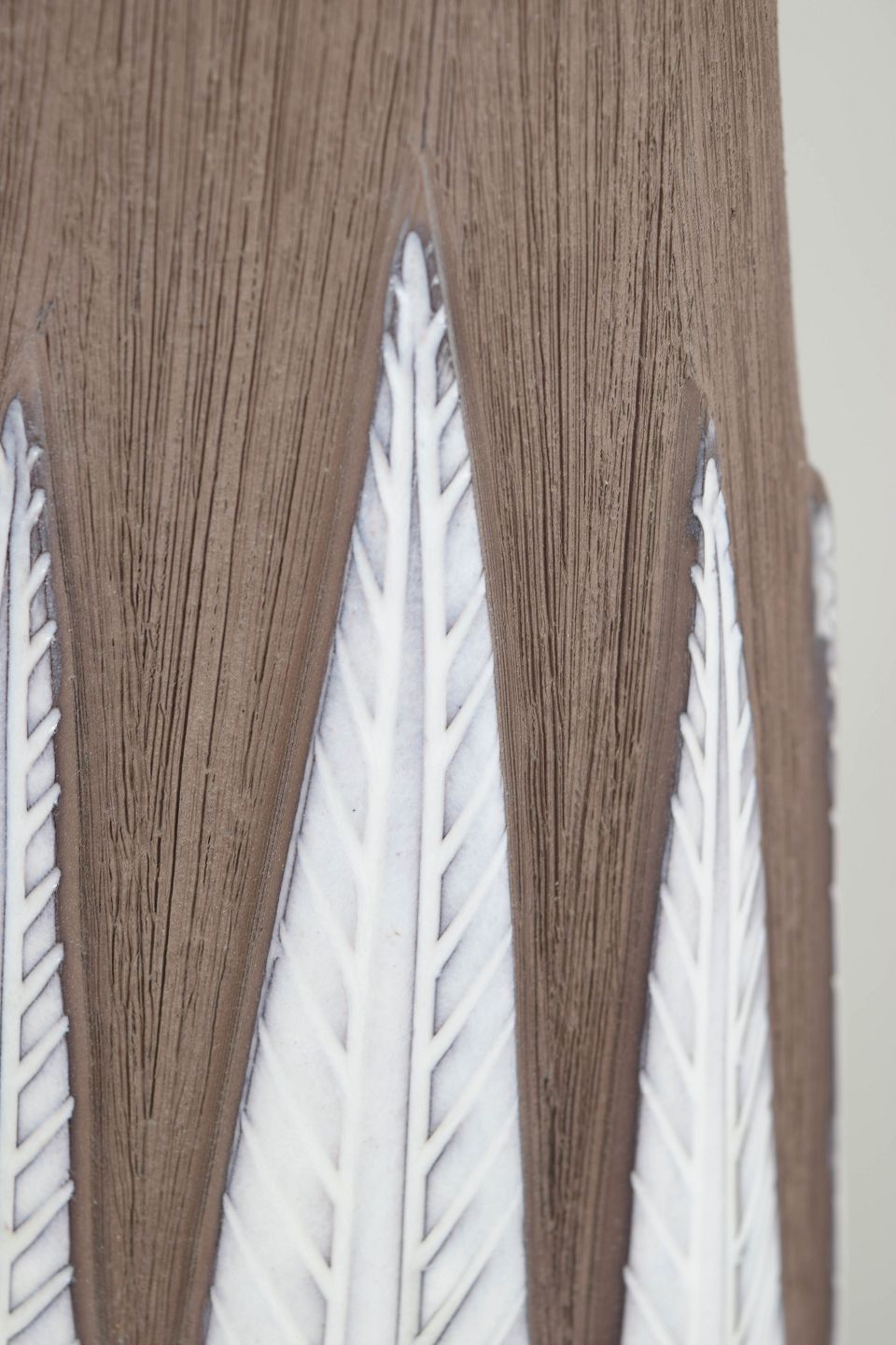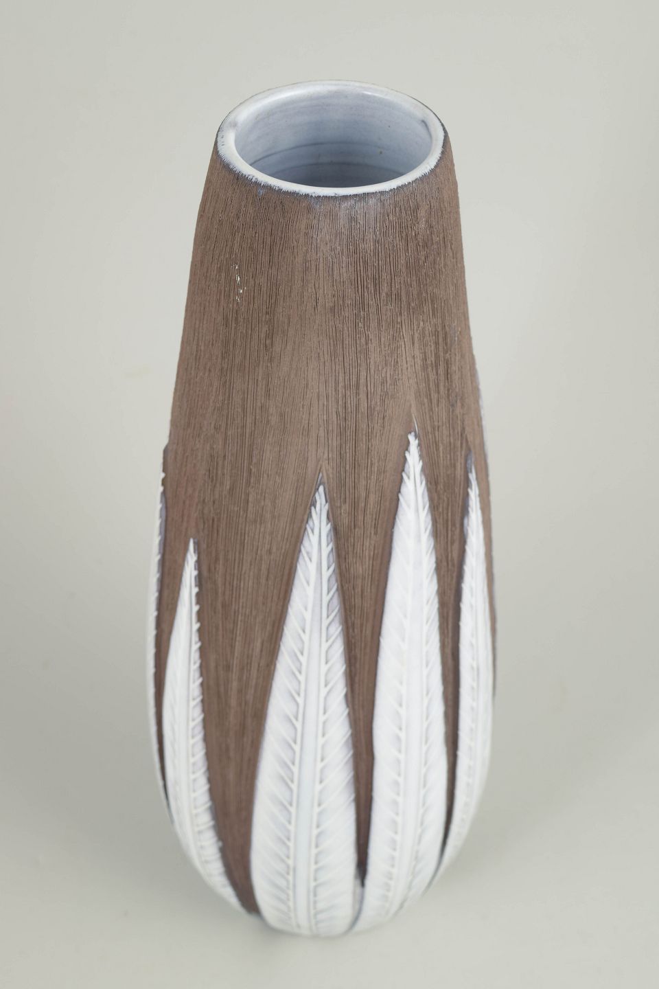 Anna-Lisa Thomson for Upsala Ekeby, Paprika vase.Elegant stoneware vase with characteristic relief decoration inspired by paprika-shaped leaves, executed in contrasting earthy and light-toned glazes. An iconic design closely associated with Swedish mid-century ceramics.