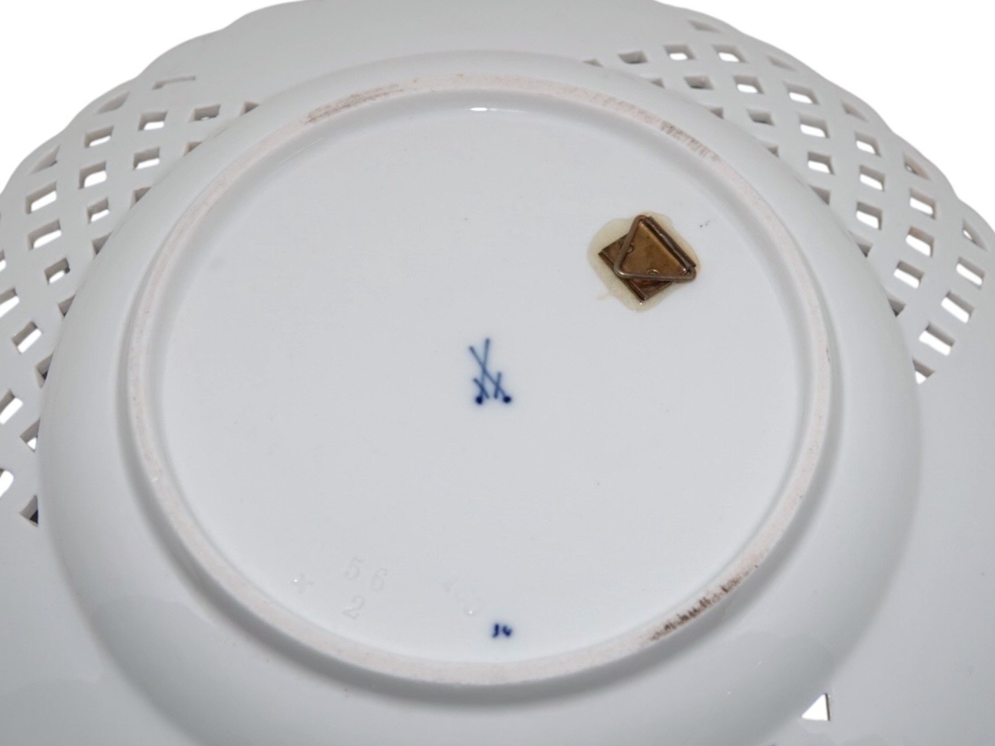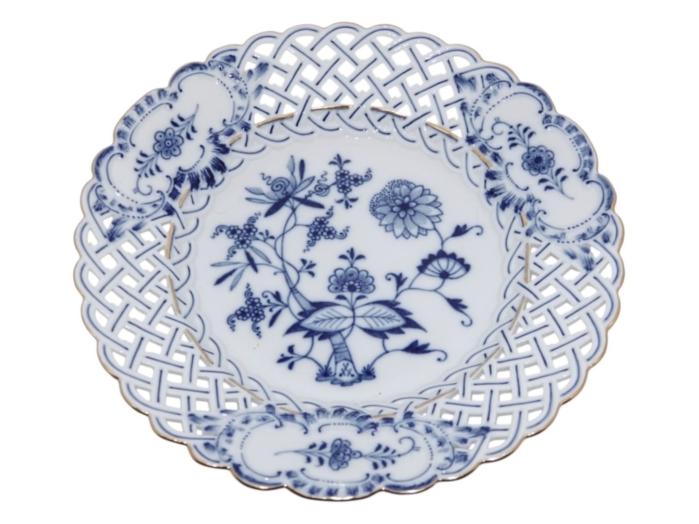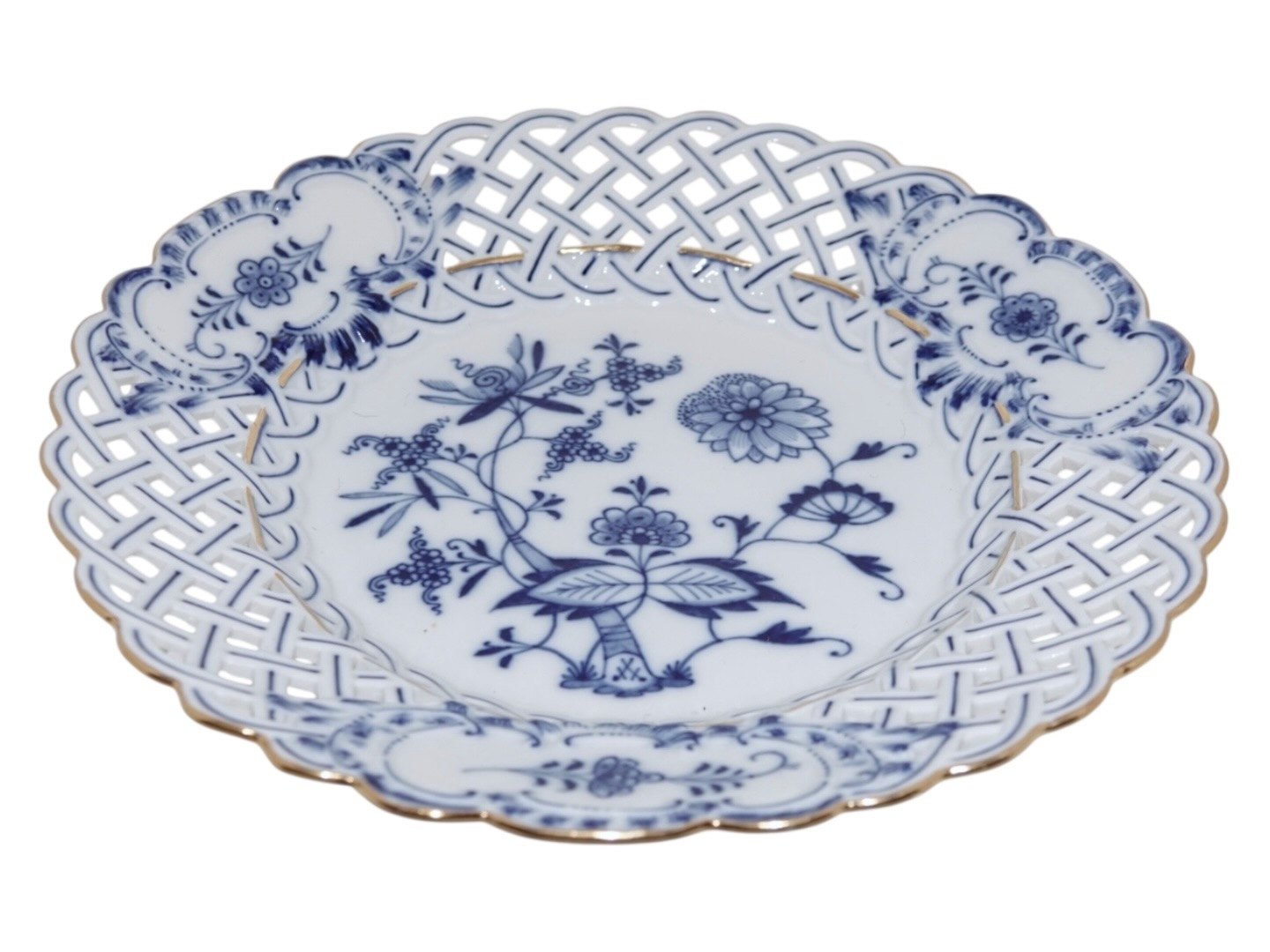 Meissen Germany, Blue Onion double pierced plate with gold edge.Diameter 23.5 cm.