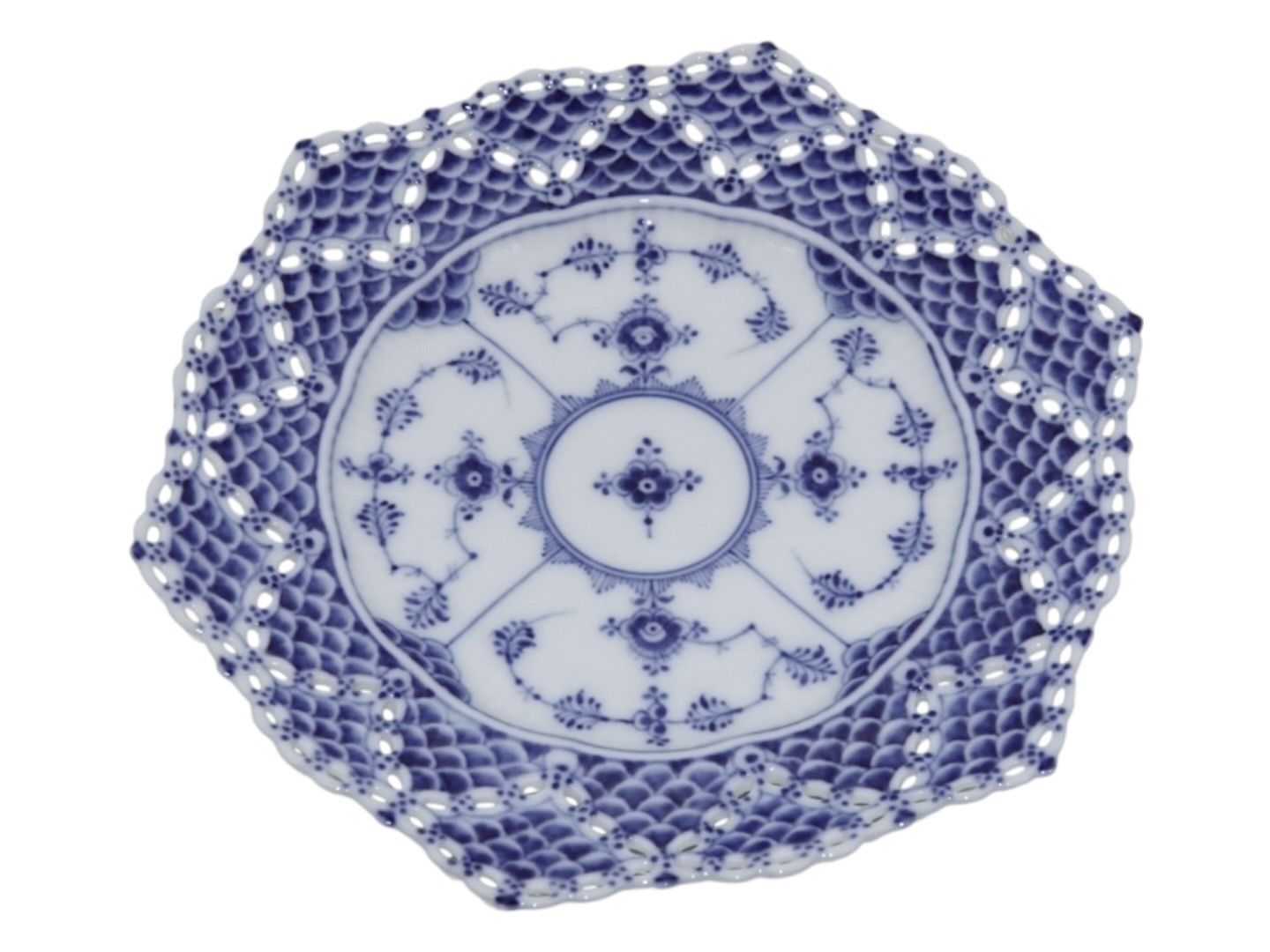 Royal Copenhagen Blue Fluted Full Lace, large double lace plate.The plate is hallmarked 1913 (At that time, once a year, the painters at Royal Copenhagen could make one thing for themselves. These were marked with year and sometimes PRIVAT and is often extra nicely decorated).