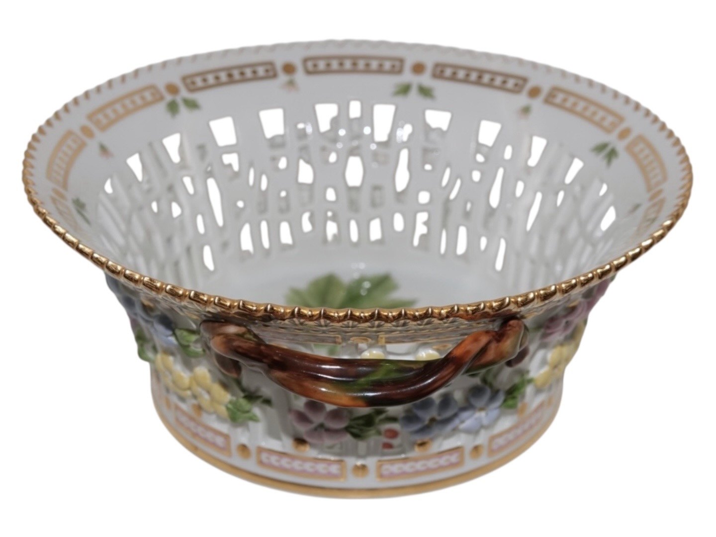 Royal Copenhagen Flora Danica, round fruit basket.Decoration number 20/3534.