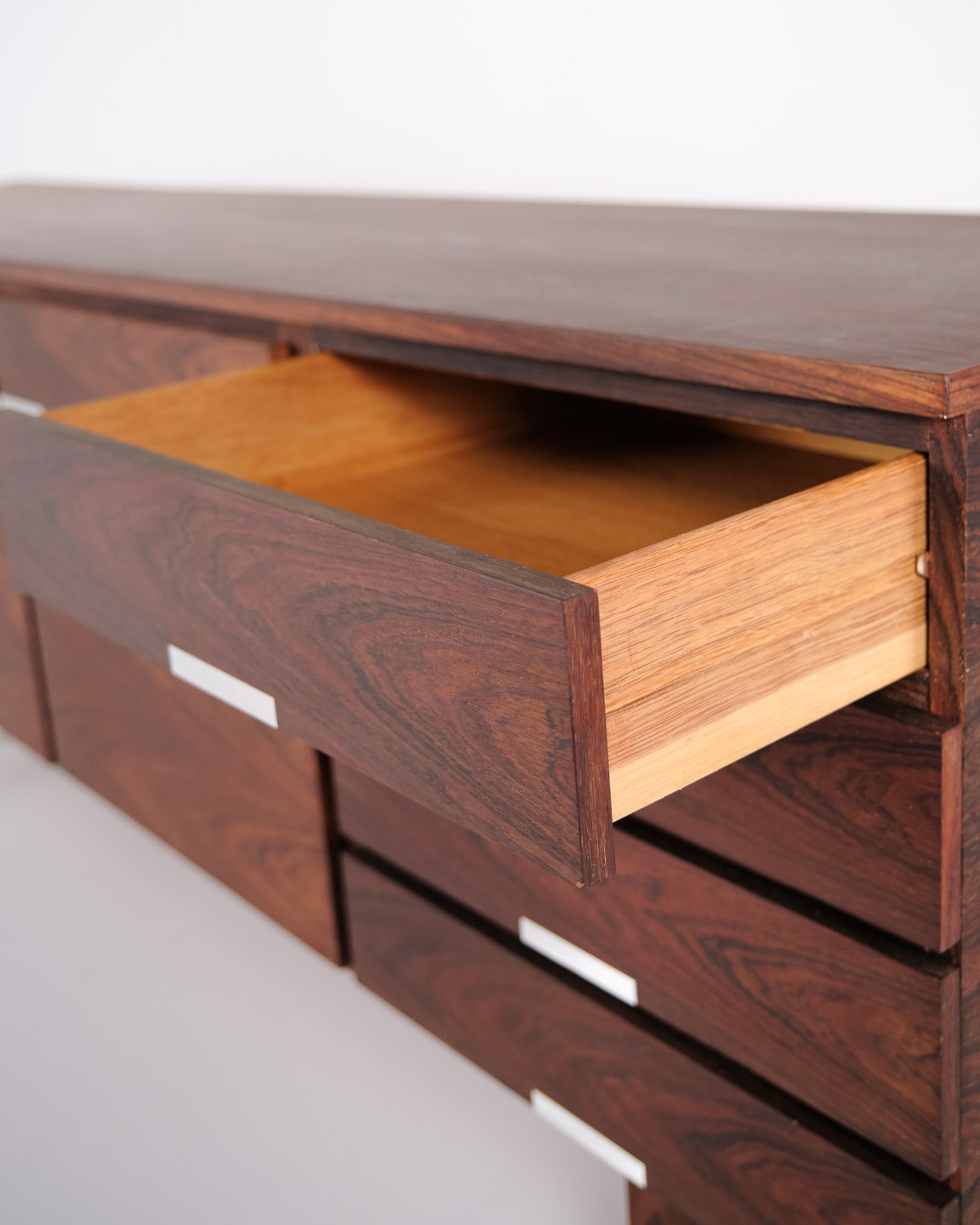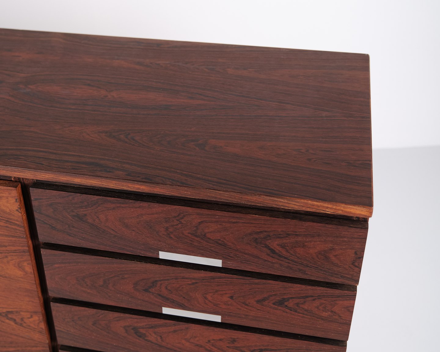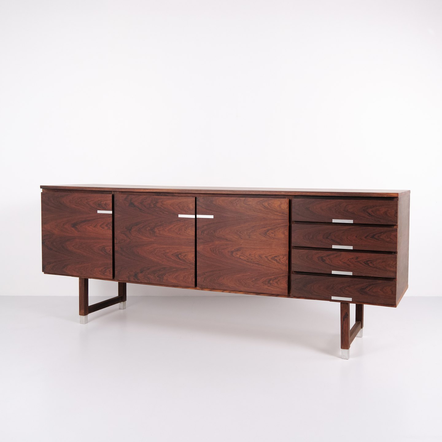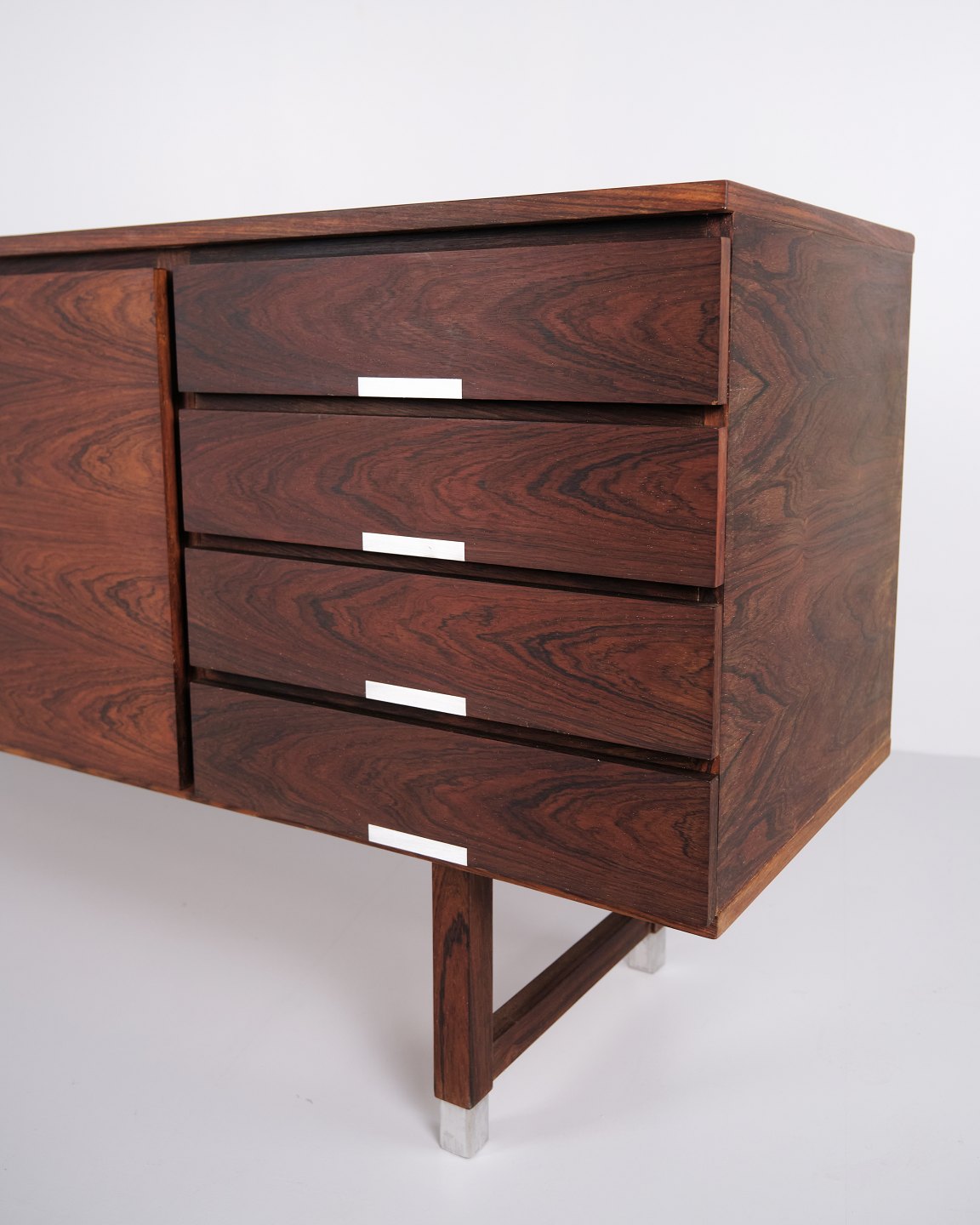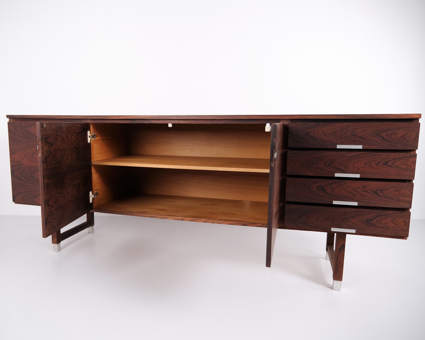 Sideboard in rosewood designed by Kai Kristiansen for Feldballes Møbelfabrik. Danish design from the 1960s with aluminum handles and feet.— Origin: Denmark