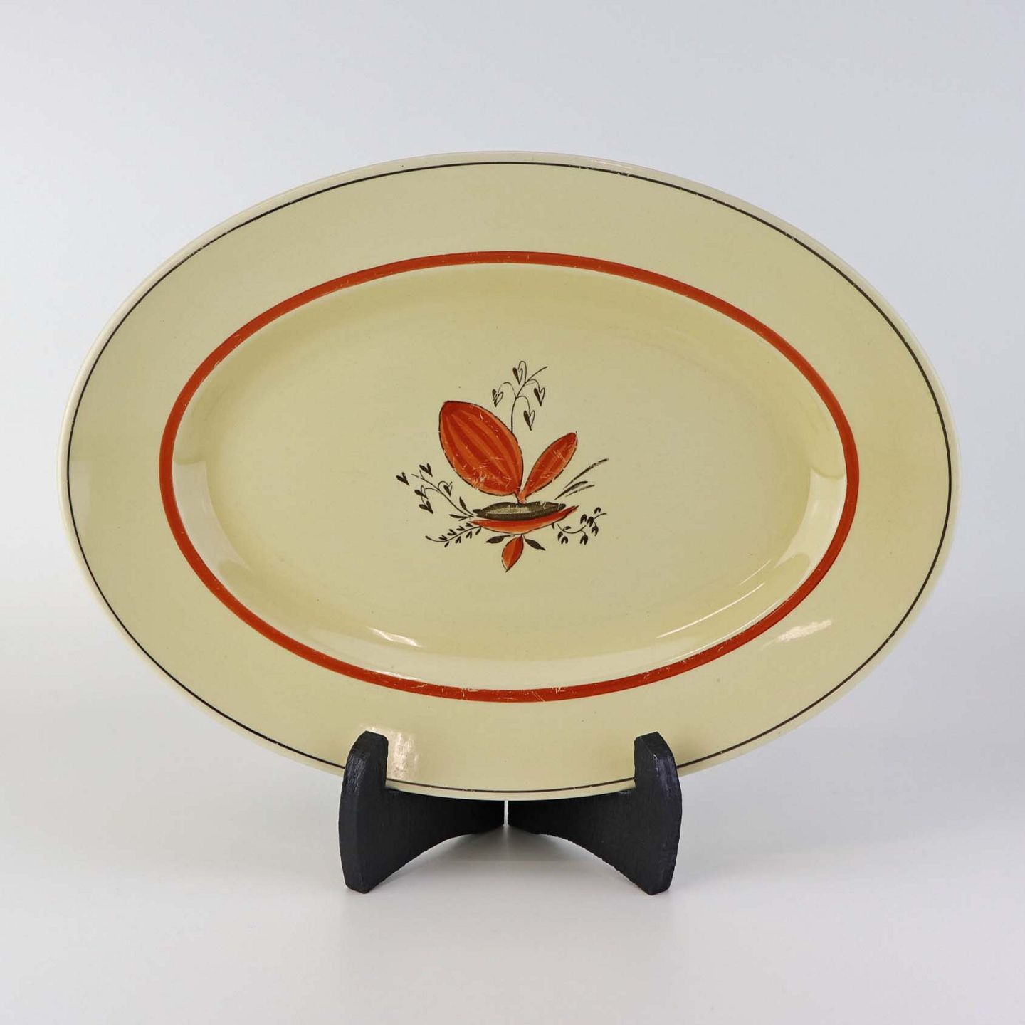 Ovalt fad i fajance fra stellet Silkeborg fremstillet i perioden 1937-1939Formgiver Thorkild Olsen