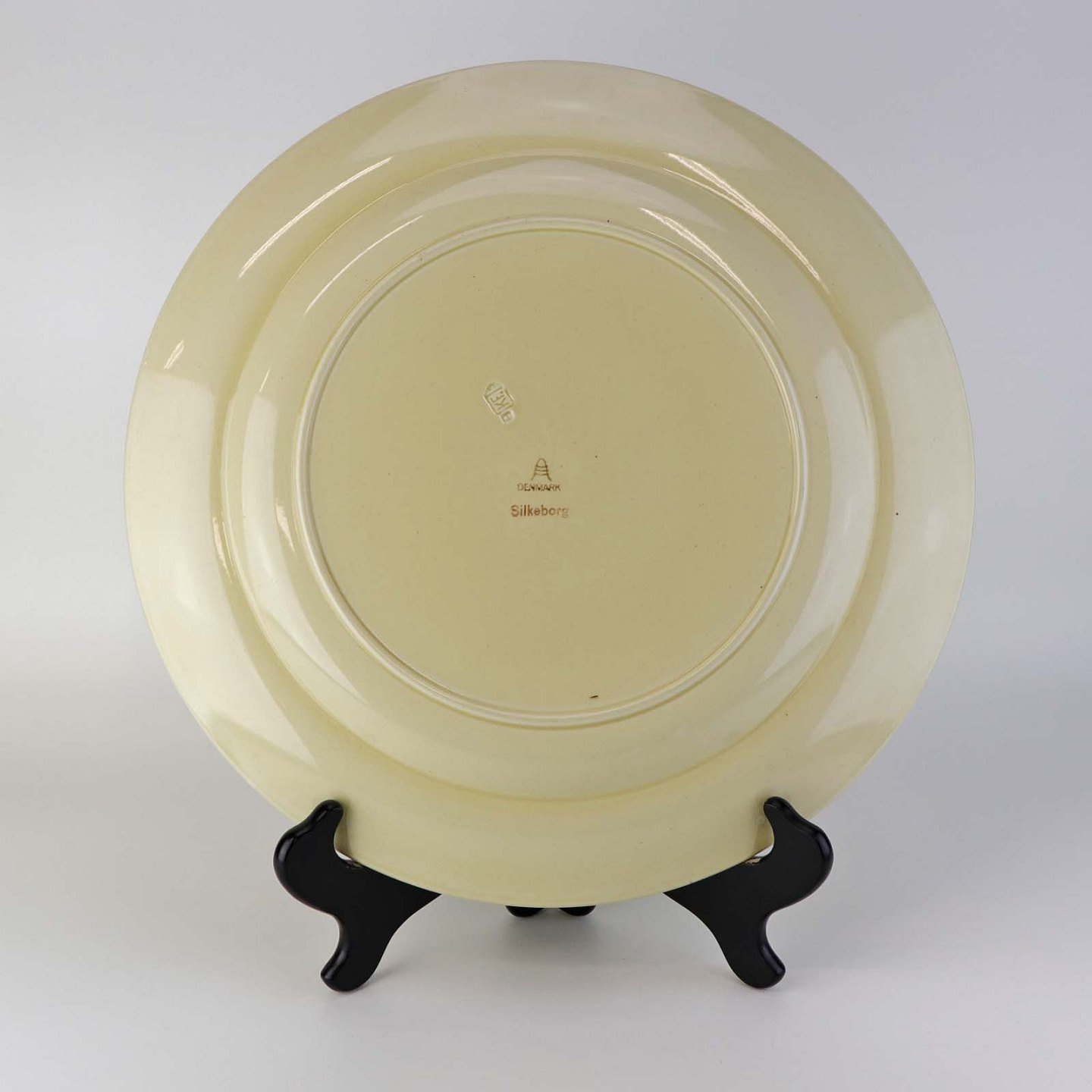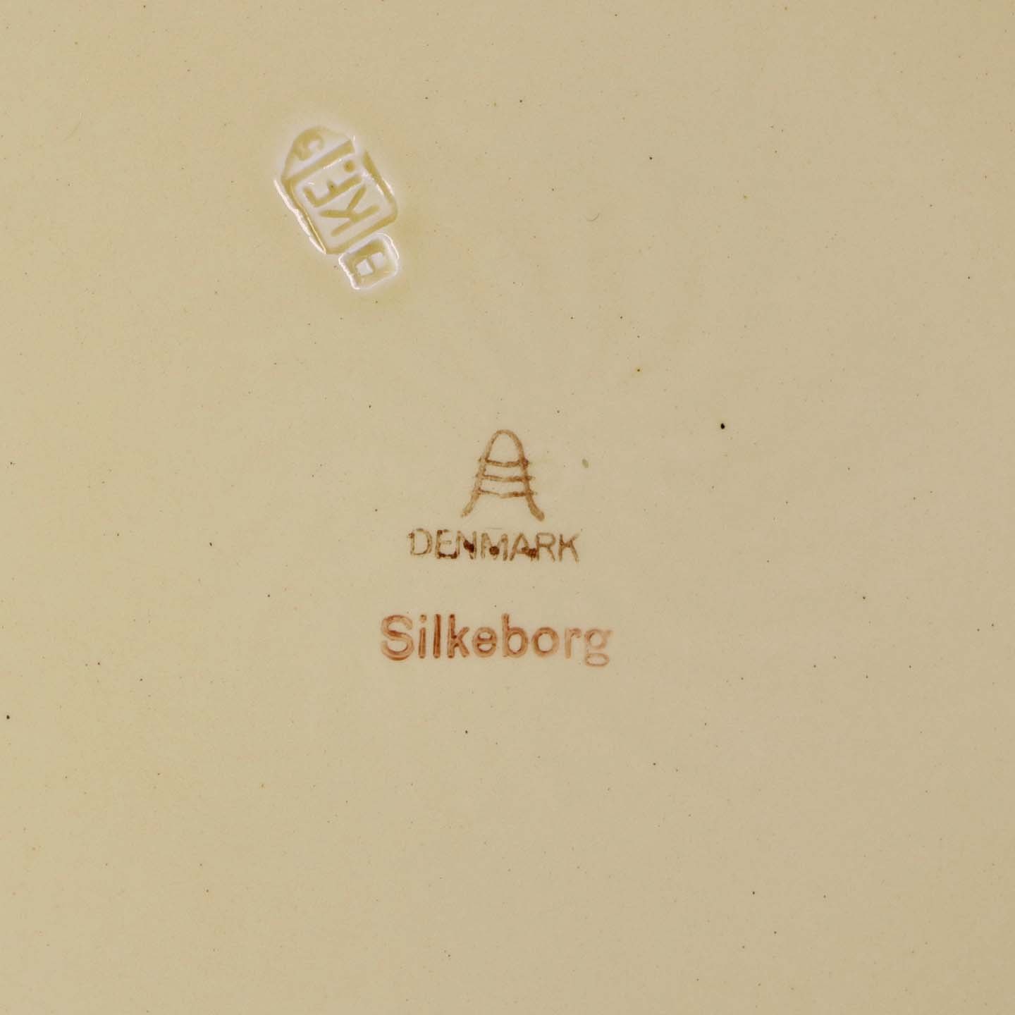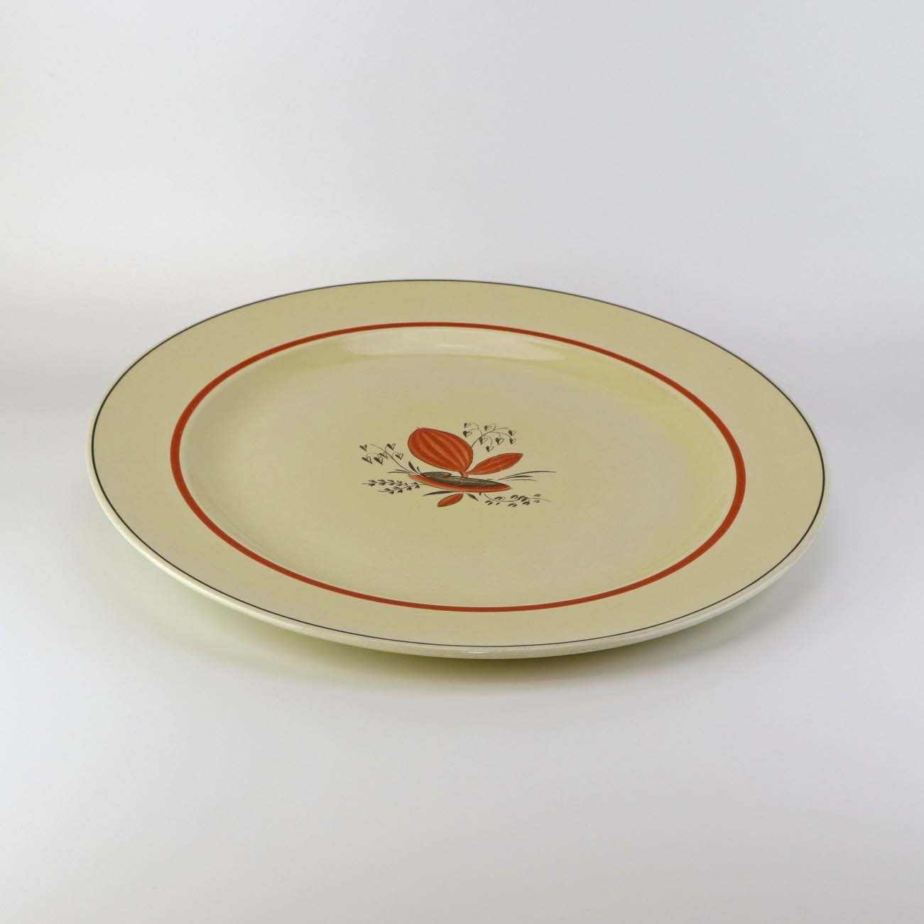 Rundt serveringsfad i fajance fra stellet Silkeborg fremstillet i perioden 1937-1939Formgiver Thorkild Olsen