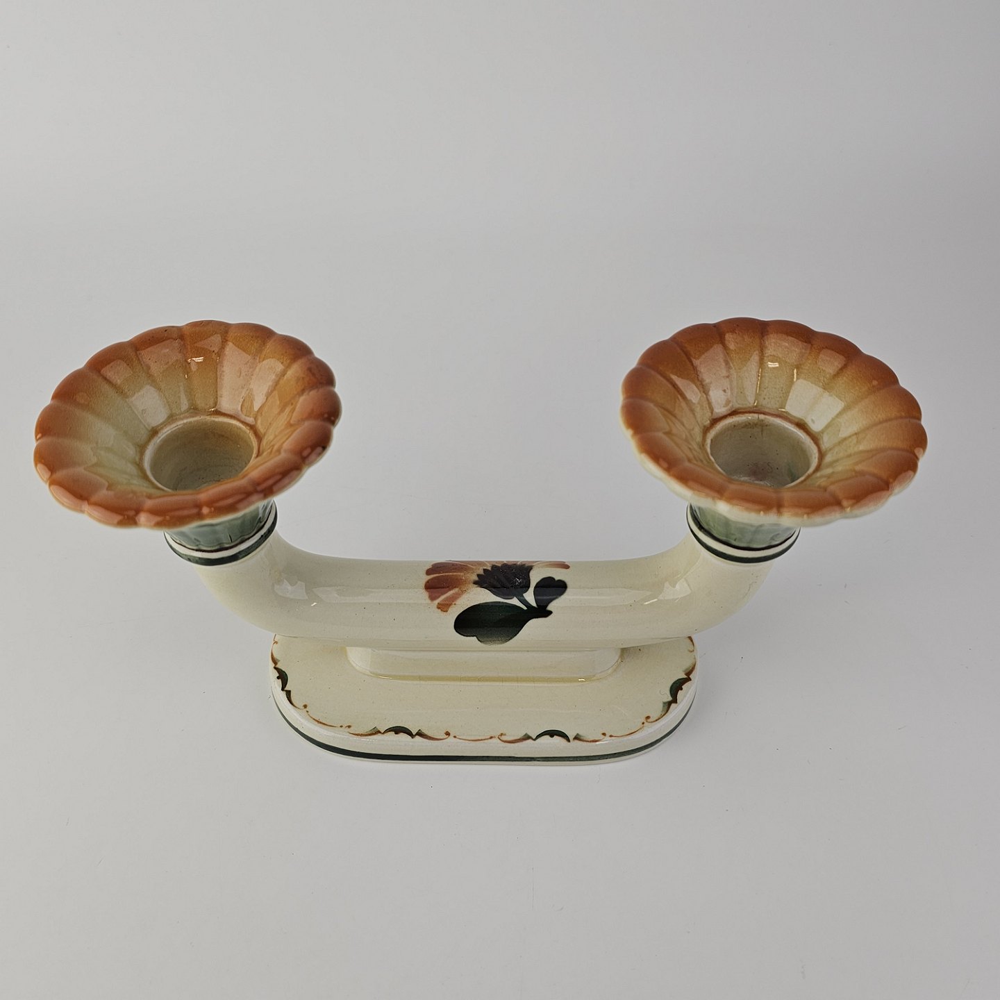 To-armet lysestage i fajance fra stellet Morgenfrue Nr. 1743