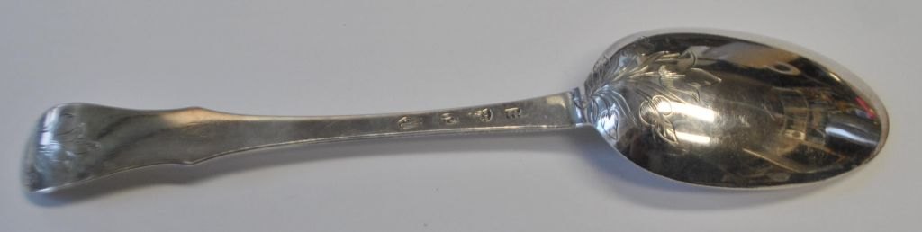 Copenhagen silversmith (18th century): Rococo silver spoon. Unclearly stamped 1786. With decorations in the form of poppies. With newer engraving. L.: 21.5 cm.Weight: 57 grams.