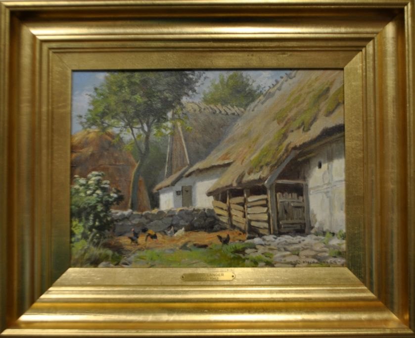 Langer, Viggo (1860 - 1942) Denmark: Chickens at a farm. Oil on canvas. Signed. 24 x 33 cm.Framed: 38 x 47 cm.