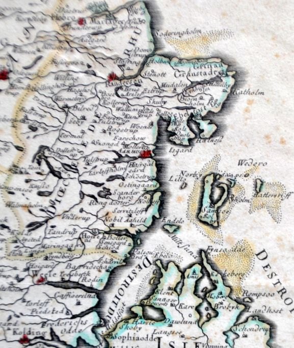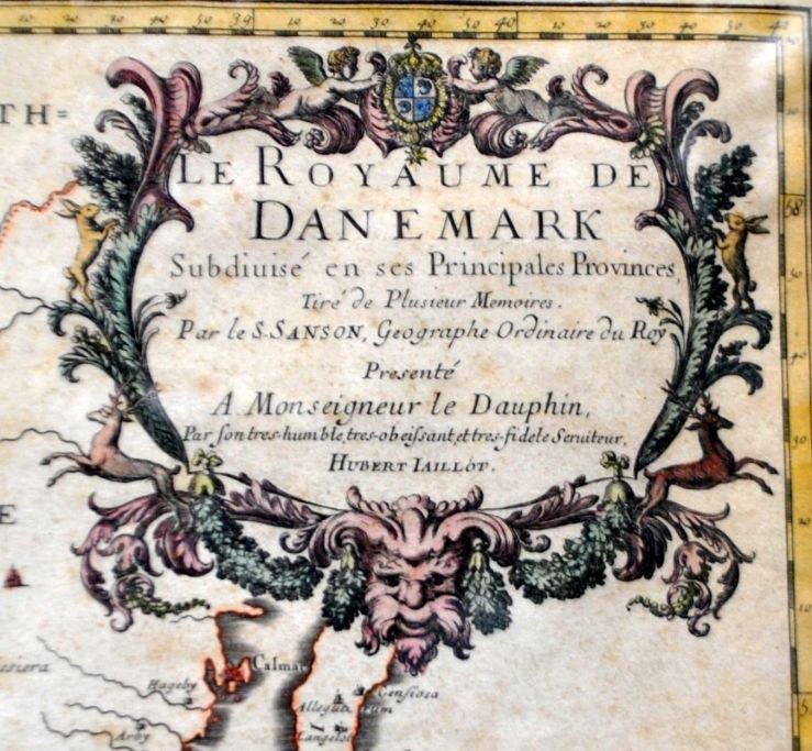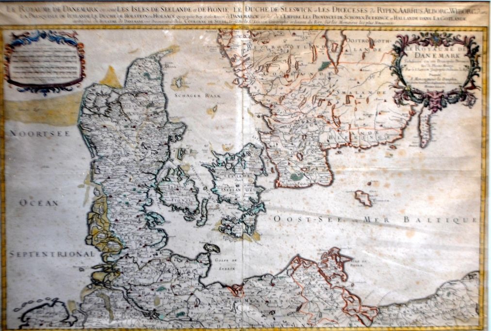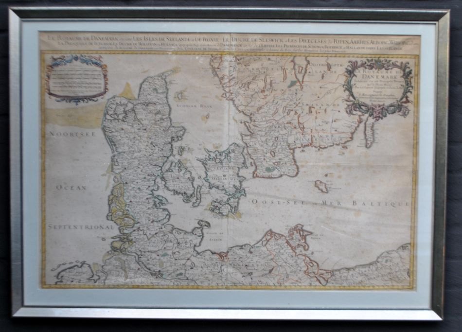 Alexis Hubert Jaillot (1632 - 1712) France: General Map "Le Royaume de Danemark". 1674.Hand-colored copperplate engraving. With printed name. 60 x 84 cm.