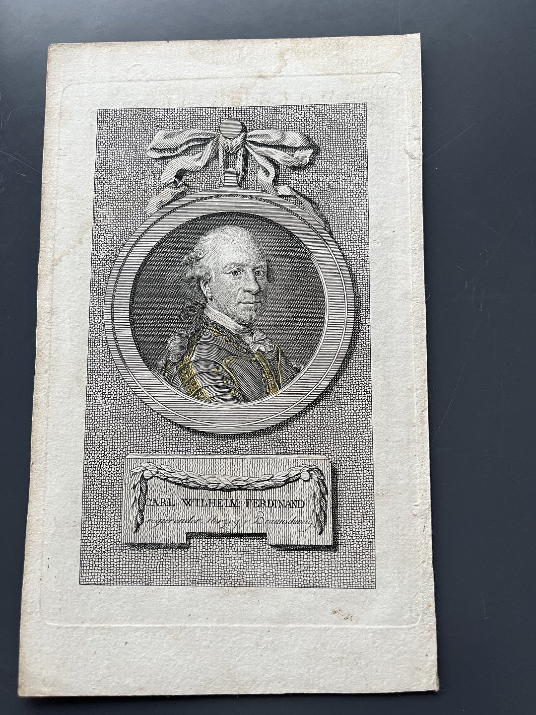 Kobberstik af Clemens Kohl - Portræt af Feltmarskal Hertug Karl Wilhelm Ferdinand til Braunschweig.
