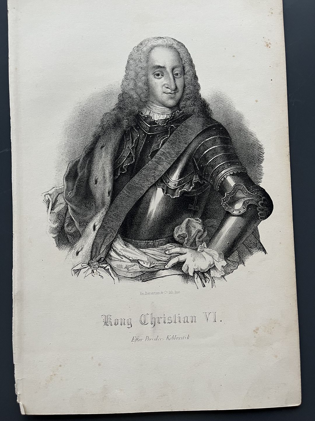 Litografi af Em. Bærentzen - Portræt af HM Kong Christian VI af Danmark og Norge.