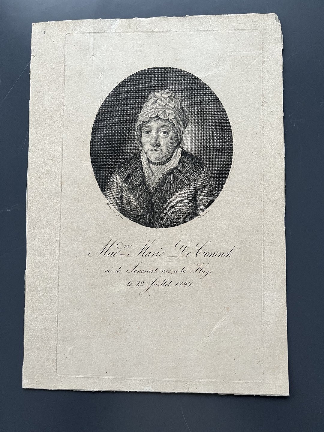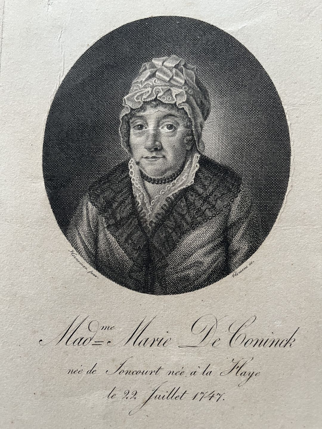 Kobberstik af J.F. Clemens - Portræt af Madame Marie de Coninck.