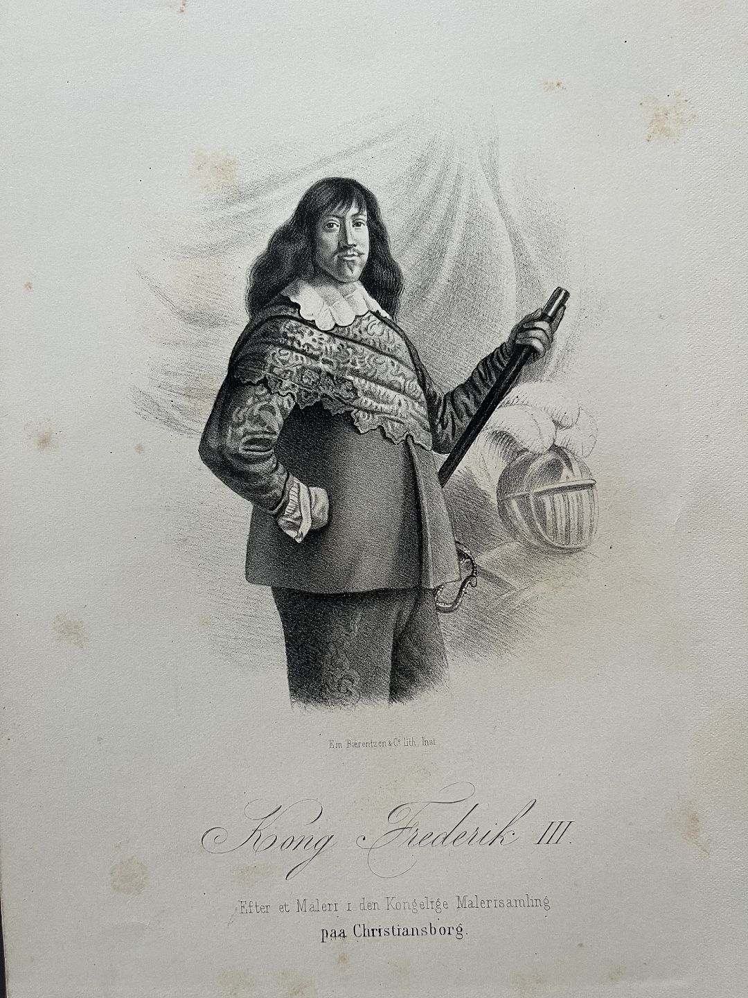Portræt af HM Kong Frederik III af Danmark og Norge - litografi af Em. Bærentzen 1868.