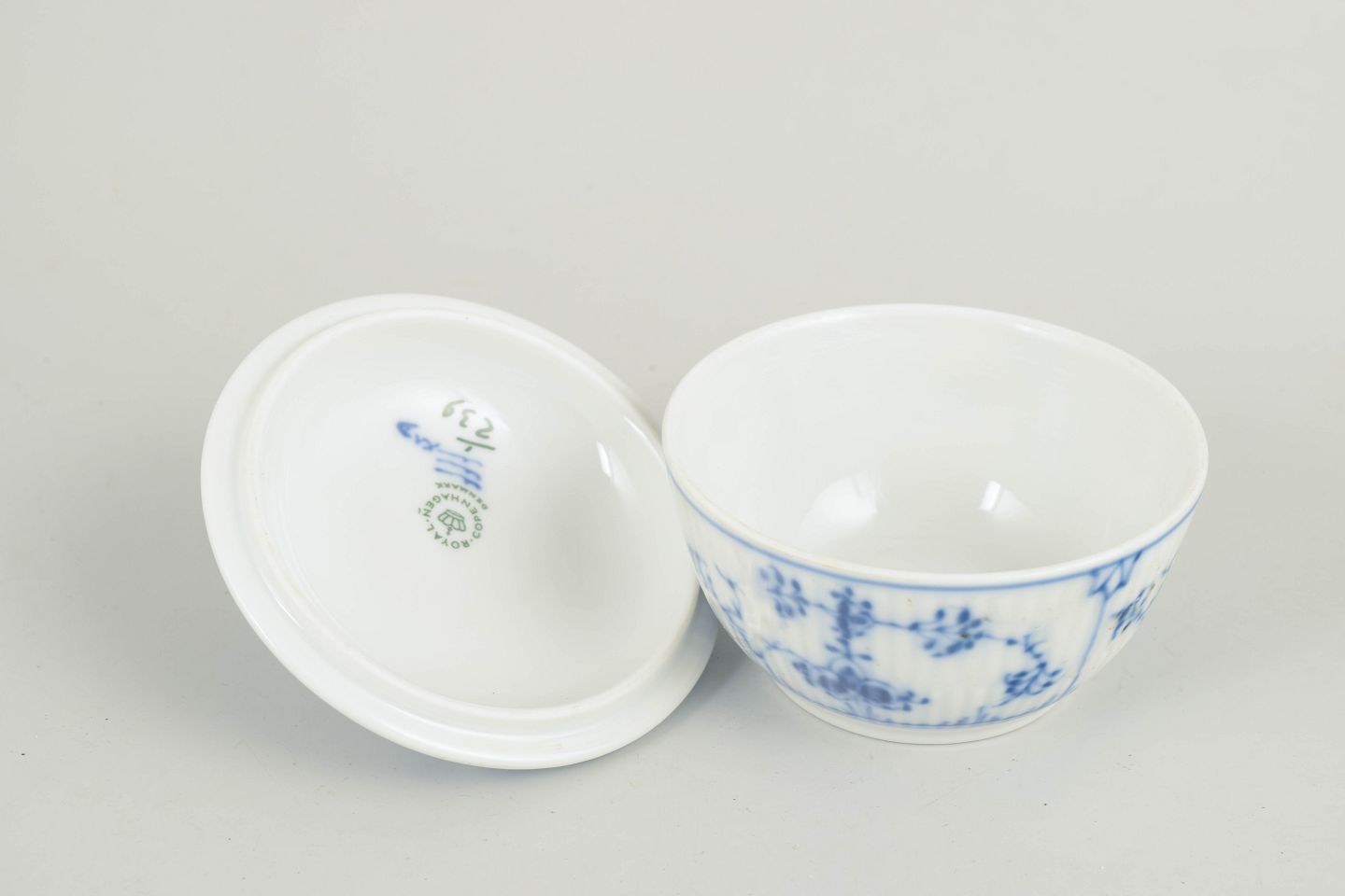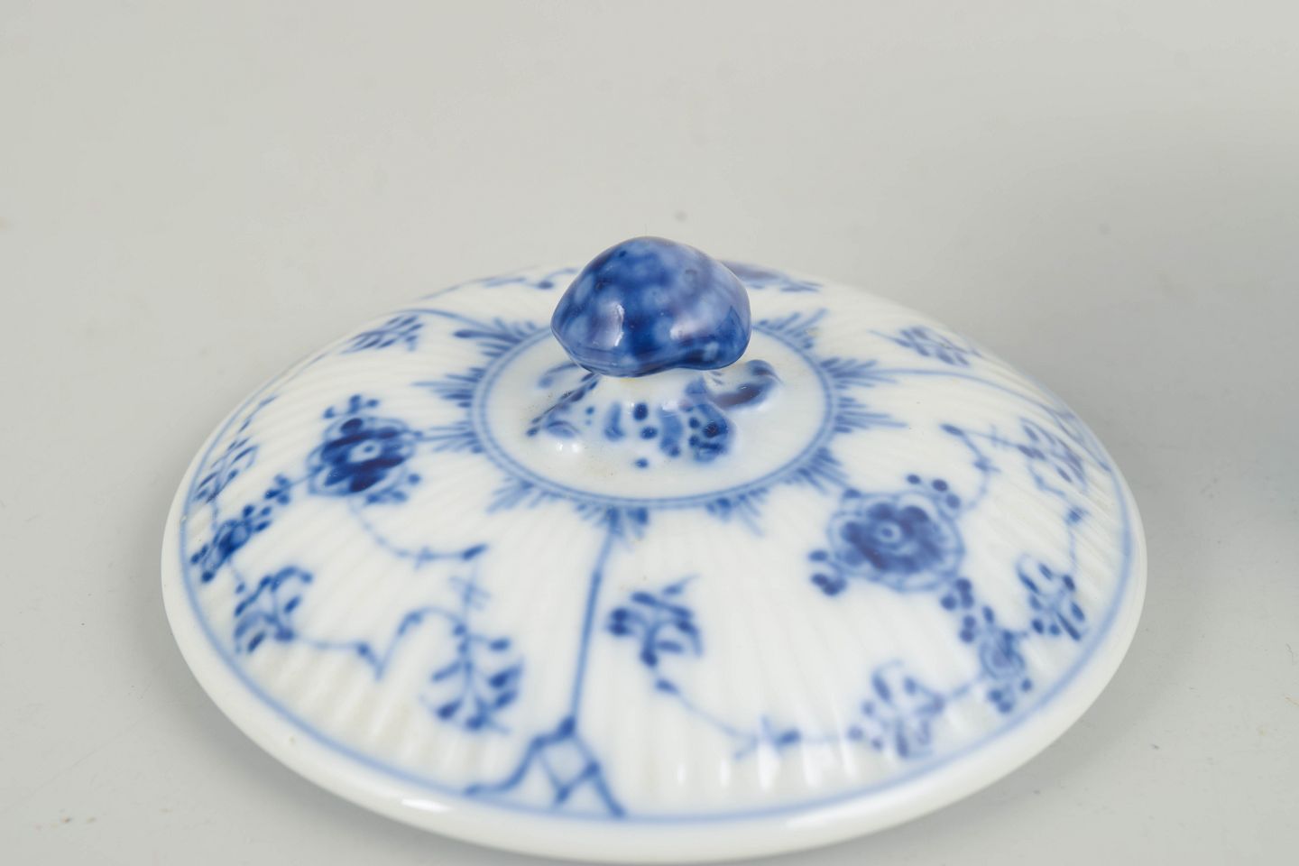 Royal Copenhagen, sugar bowl, Blue Fluted Plain.Fluted sugar bowl in glazed porcelain with hand-painted cobalt-blue underglaze decoration. Classic rounded form with matching lid topped by a finial. Model 1/239.